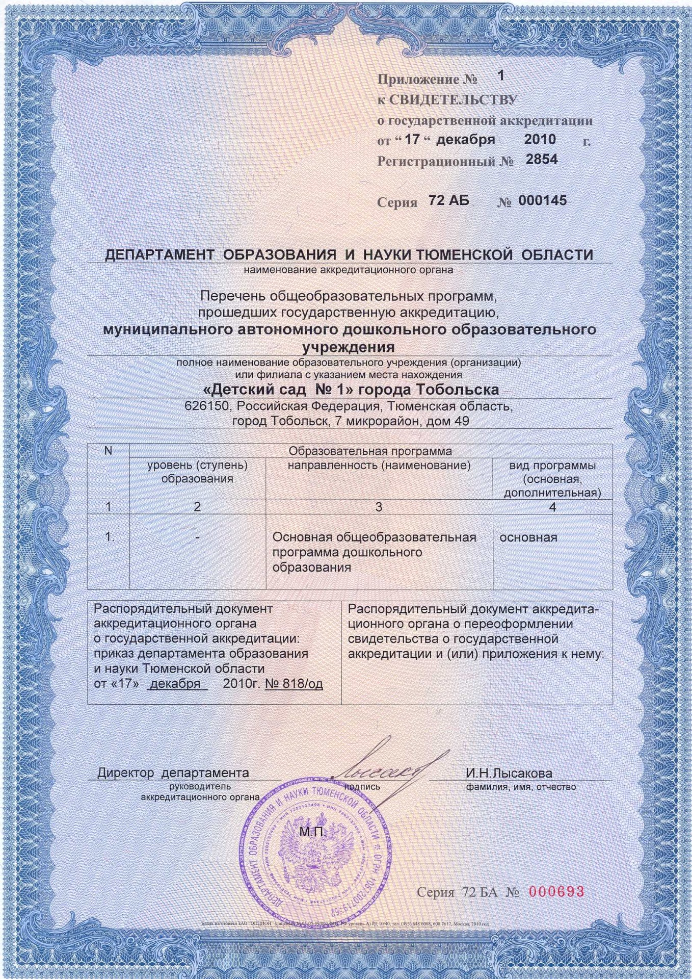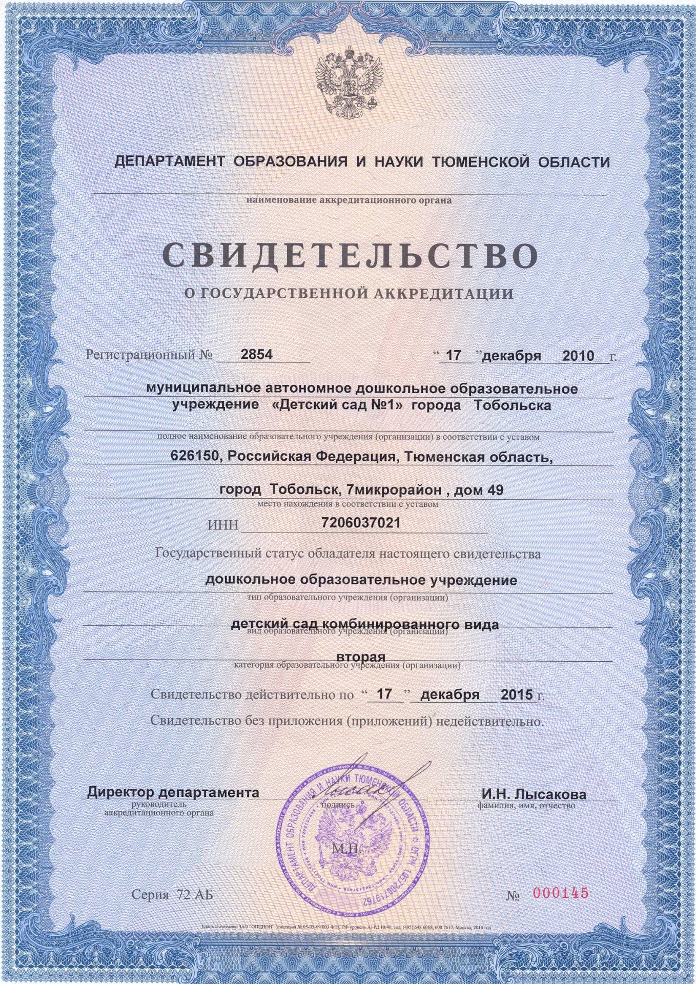 Cвидетельство о государственной аккредитации