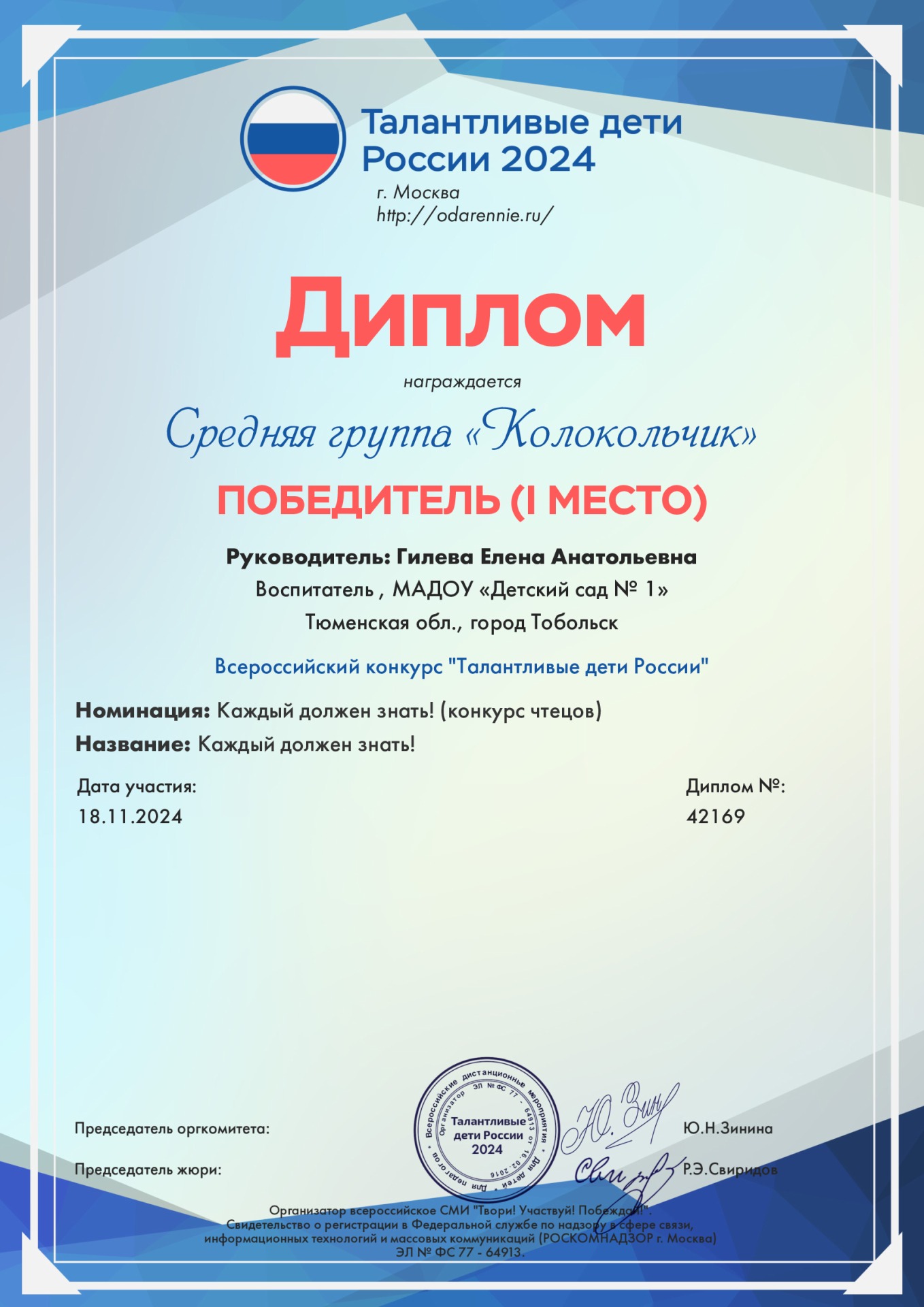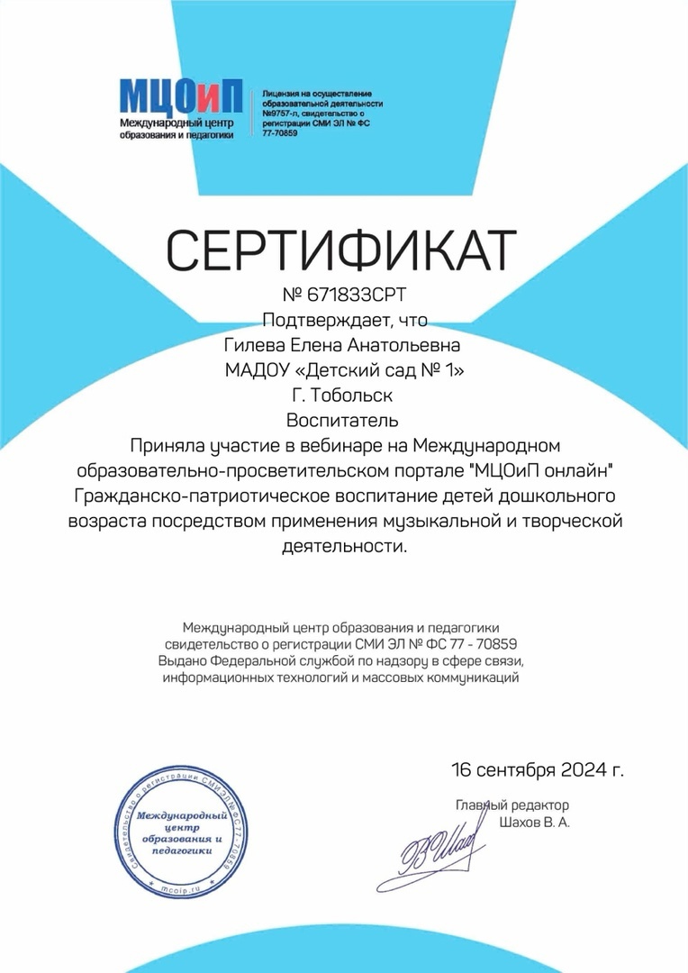 "Детский сад комбинированного вида № 1" г.Тобольска