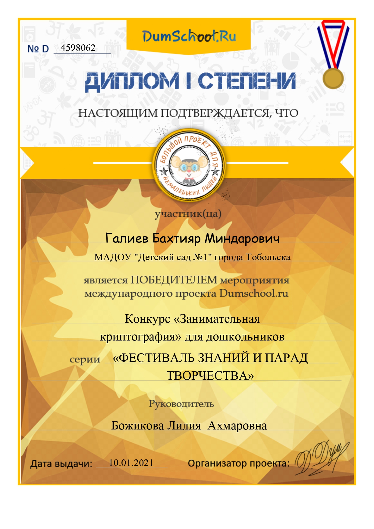 "Детский сад комбинированного вида № 1" г.Тобольска