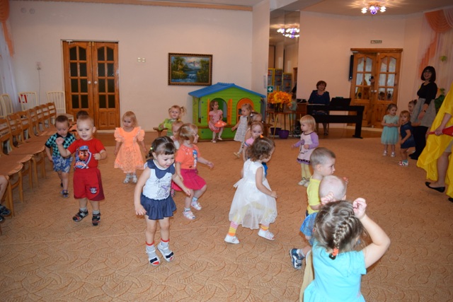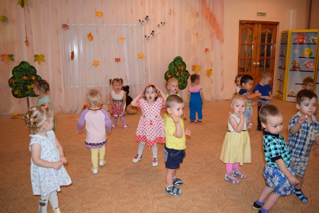 Вместе с ней дети отправились в осенний лес, где встретили сказочных зверей: зайку, ёжика белочку. Малыши с удовольствием играли с ними в игры «Собери грибочки для белочки», «Листопад», «Солнышко и дождик», танцевали, участвовали в играх-превращениях.