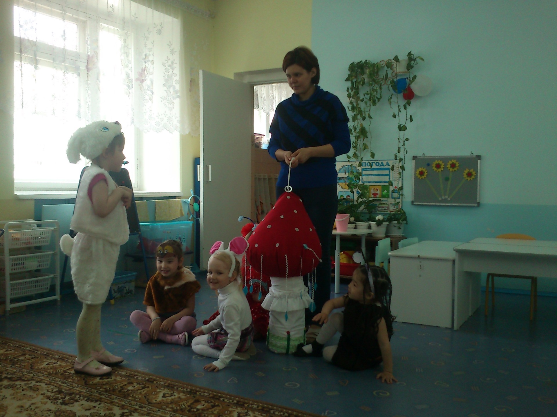 Группа "Пчелки" подготовили драматизацию сказки Владимира Сутеева "Под грибом".