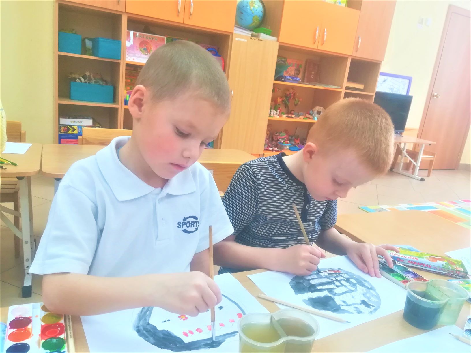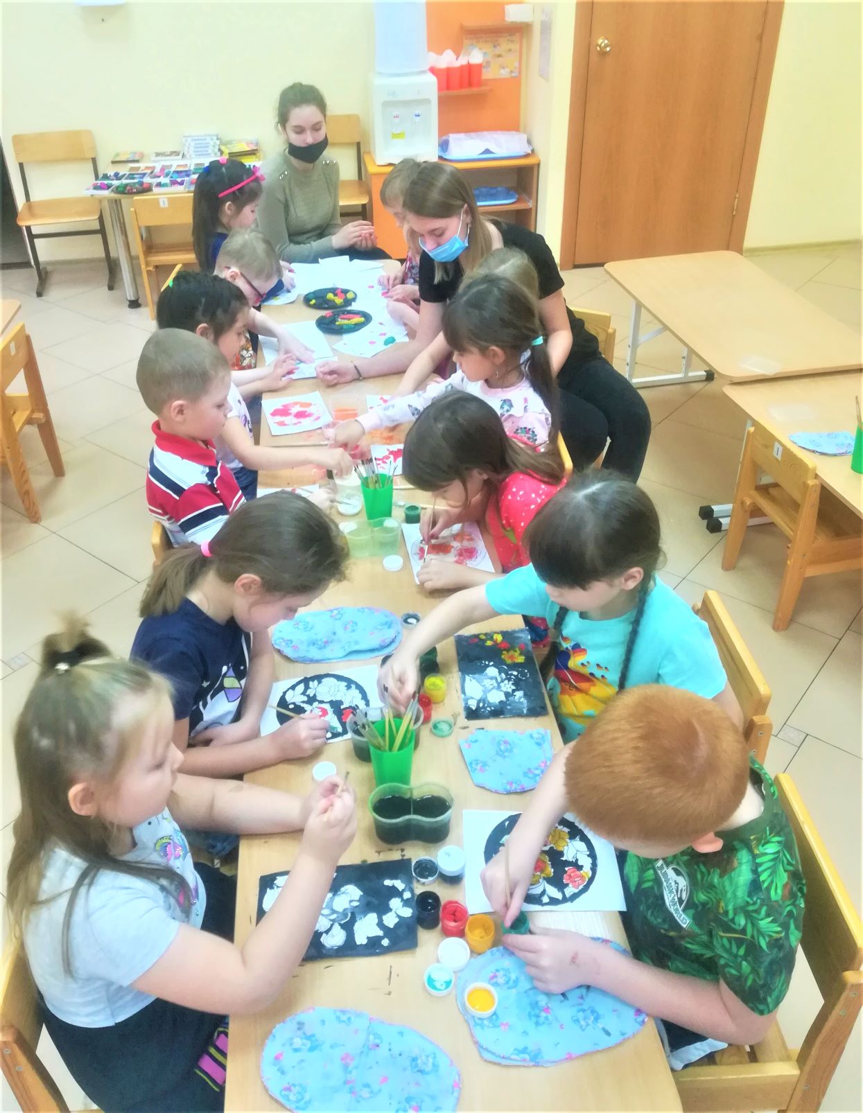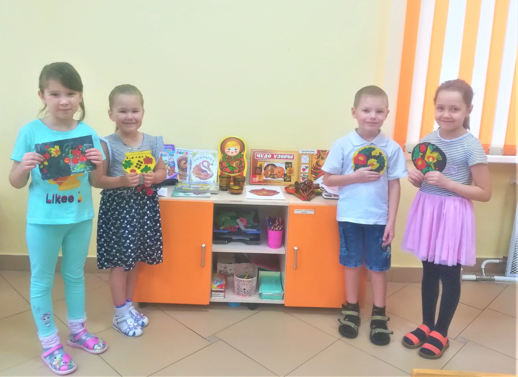 Изучив основные элементы хохломской росписи (ягоды, цветы, травка, завитки, капельки, кудрина), воспитанники научились составлять композицию узоров, что способствовало развитию чувства ритма и творческого воображения.