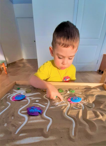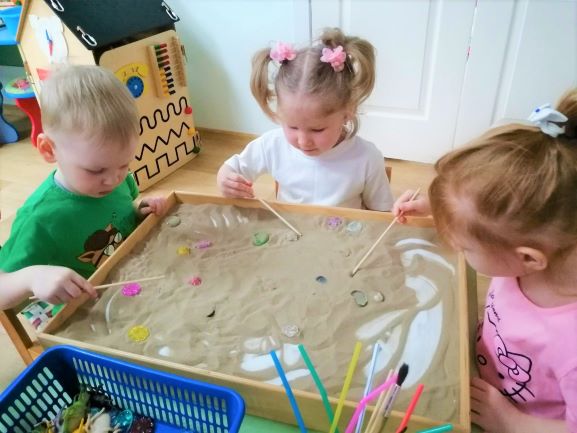 В младшей группе «Карапуз» дети занимаются песочной терапией.
