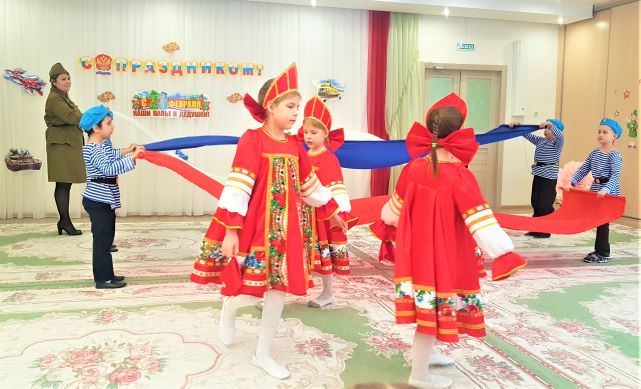 По традиции в нашем детском саду на День защитника Отечества прошли спортивные праздники. Все группы подготовили спортивные соревнования. Маленьким спортсменам предстояло пройти эстафеты и соревноваться в ловкости, силе, смелости, находчивости. Также был подготовлен концерт в данной тематике, дети исполнили военные песни, танец «Россия», мальчики исполнили танец «ВДВ».