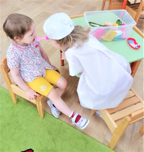 Способствовали возникновению сюжетно-ролевых игр «Готовим обед», «Салон красоты», «Лечим кукле Даше горло», «Магазин» во всех играх дети с увлечением играли и придумывали новые сюжеты.