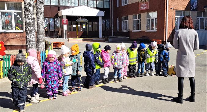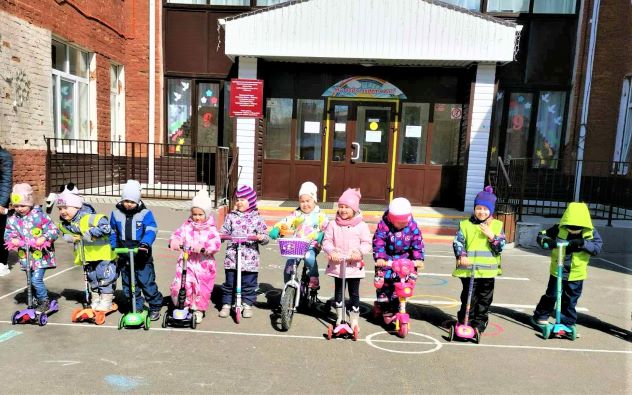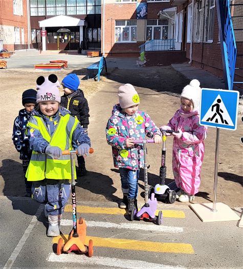 Воспитанники средней группы «Звездочки» познакомились с правилами дорожного движения. В игре «Безопасность юных велосипедистов» узнали, что по пешеходному переходу надо проходить пешком, ведя рядом самокат или велосипед. Познакомились с дорожным знаком «Пешеходный переход», закрепили сигналы светофора с помощью загадок и стихотворений, упражнялись в умении собирать части дорожных знаков в целое. В сюжетно-ролевой игре «Регулировщик», отметили важность этой профессии и узнали о назначении жезла. В подвижной игре «Умелый пешеход» упражнялись в ходьбе по ограниченной поверхности с соблюдением правил перехода проезжей части. Так прошло посвящение детей в юных пешеходов и велосипедистов.