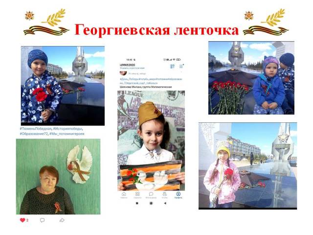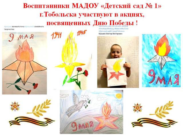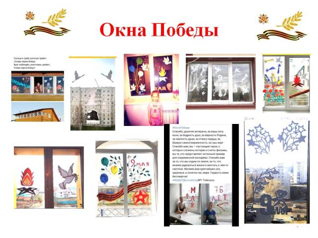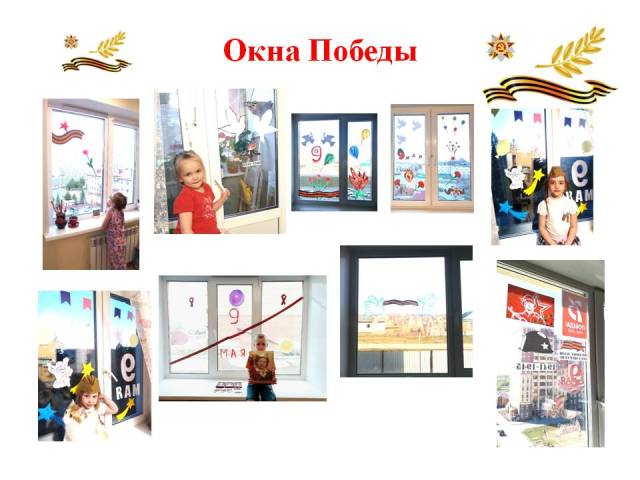 Воспитанники с родителями, педагоги детского сада продолжают участвовать в акциях, посвященных Дню Победы! Выкладывают фото в социальных сетях с рисунками, украшенными окнами, георгиевской ленточкой.