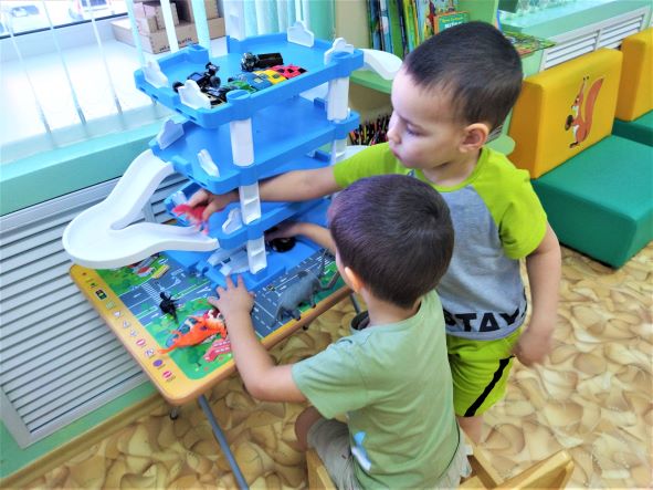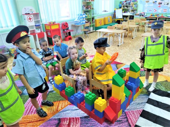 Дети нашей группы придумали и организовали игру под названием «Путешествие на транспорте». С помощью воспитателя ребята нарисовали дорогу, реки, леса, и небо, затем, взяв транспорт, ребенок должен был определить, по какой дороге ему ехать, плыть или лететь.