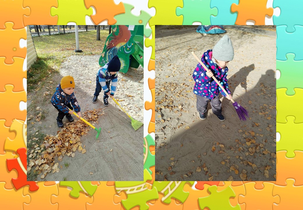 Воспитанники младшей группы «Золотой ключик» участвуют в хозяйственно-бытовом труде в группе и на участке детского сада. Дети с удовольствием собирают опавшую листву после листопада, помогают сервировать стол, собирают и расставляют игрушки.