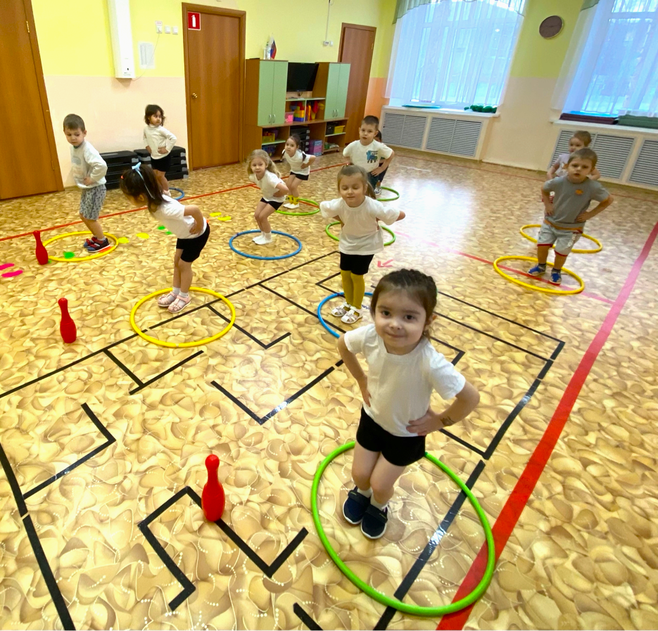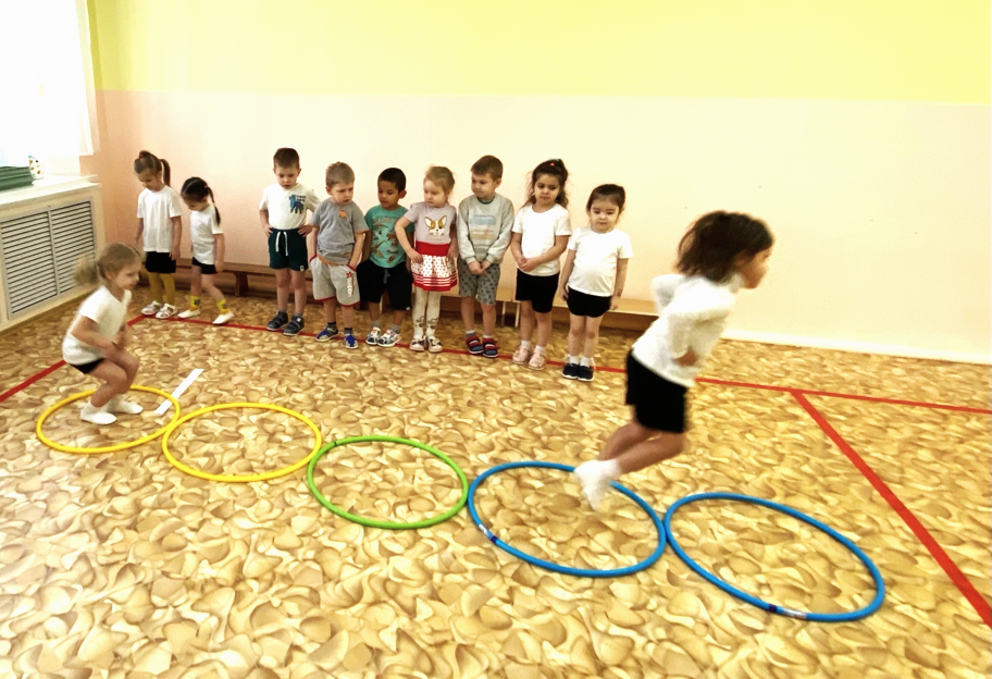 Играли в игру «Из обруча – в обруч» развивали ловкость, быстроту и координацию. Играли под веселую музыку, что способствует развитию чувства ритма и создает хорошее настроение.