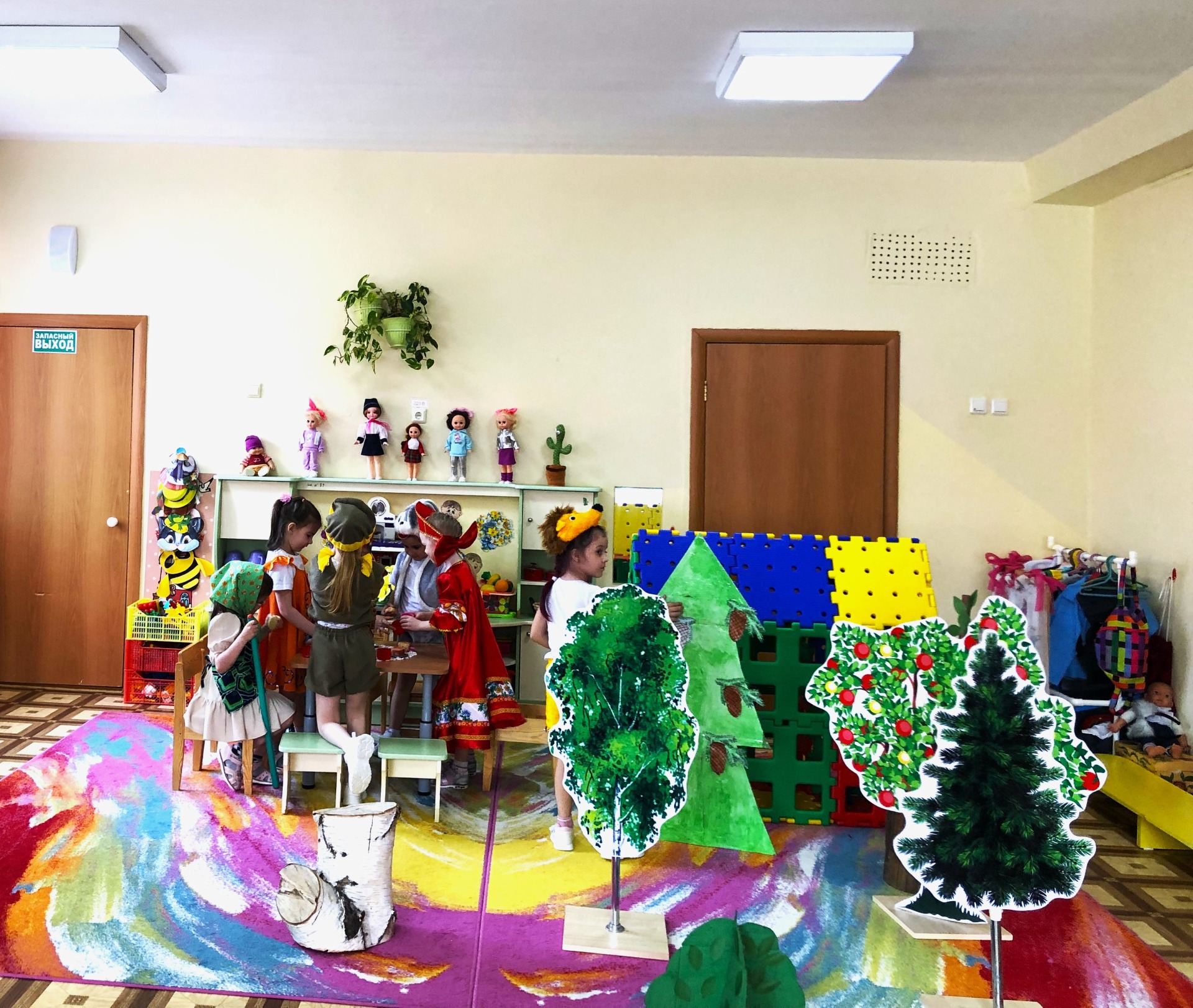 В группе организован уголок для театрализованных представлений и спектаклей, играя в которые ребята учатся самостоятельно распределять роли, сравнивали себя со сказочными героями.