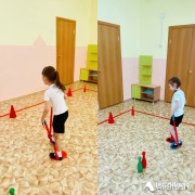 Мы играли в военные эстафеты. «Собери патроны» требовало от ребят собрать кегли в корзину. Свою меткость проверяли «Меткий стрелок». Упражнялись в беге с преодолением препятствий с помощью ходуль «Разведчик».