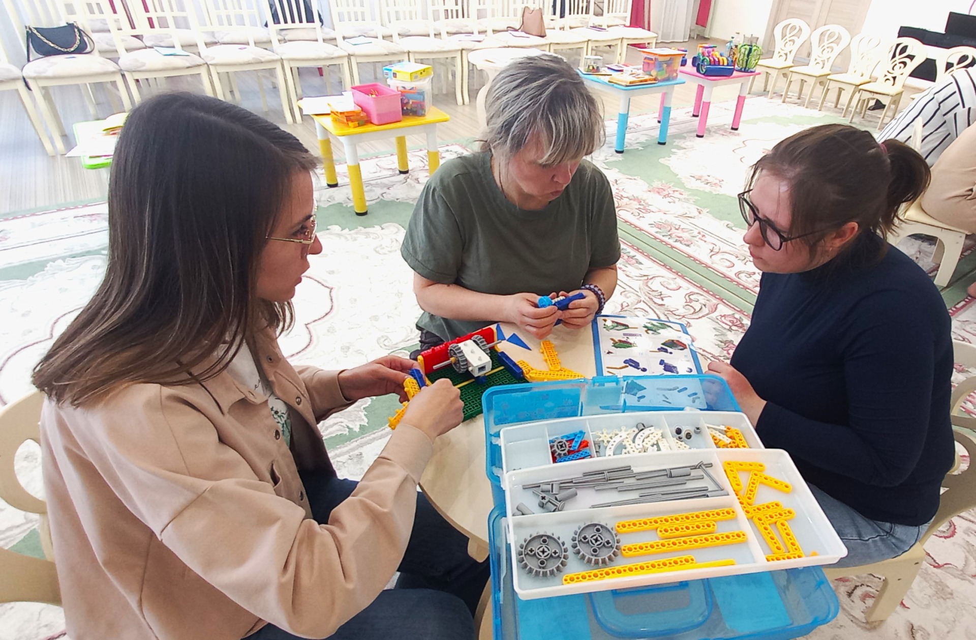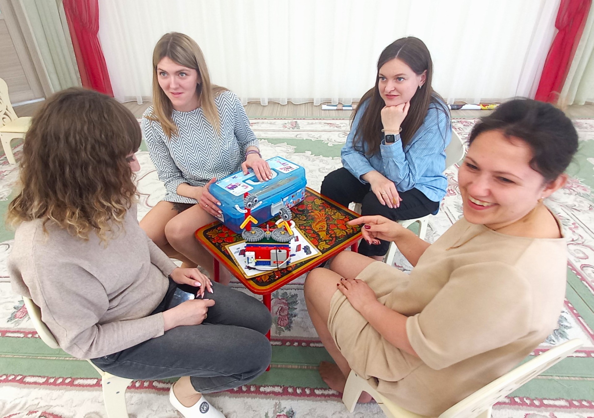 В заключение был проведен мастер-класс с конструктором по робототехнике My Robot Time, родители ненадолго окунулись в детство и с большим удовольствием включились в игру. Процесс строительства получился познавательным, продуктивным, эмоциональным. Все получили заряд хорошего настроения и, конечно же, море положительных эмоций.