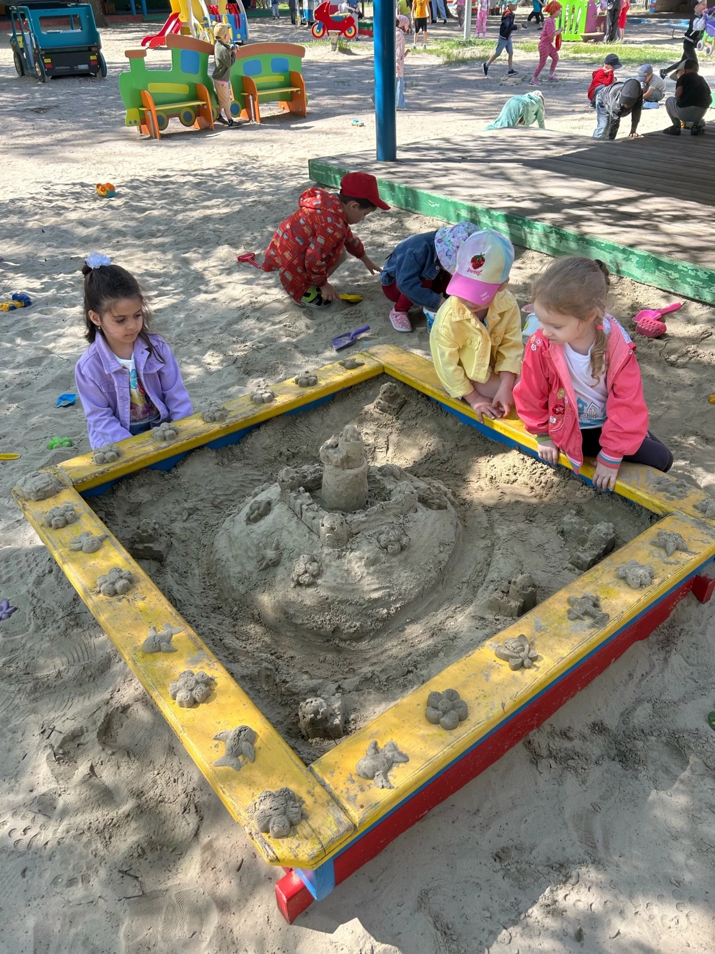 Идея творчества была так заразительна, что все дети старались принять участие в строительстве, не забывая о правилах работы с песком.
