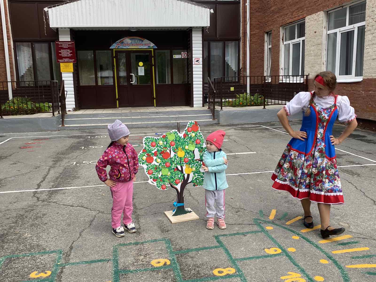 Во время развлечения, дети рассказывали стихи, водили хороводы, вспоминали пословицы, отгадывали загадки об урожае, участвовали в конкурсах "Кто больше скажет хвалебных слов о яблоке", "Кто больше назовёт сказок, в которых упоминается урожай", а также все вместе участвовали в весёлых играх и эстафетах.