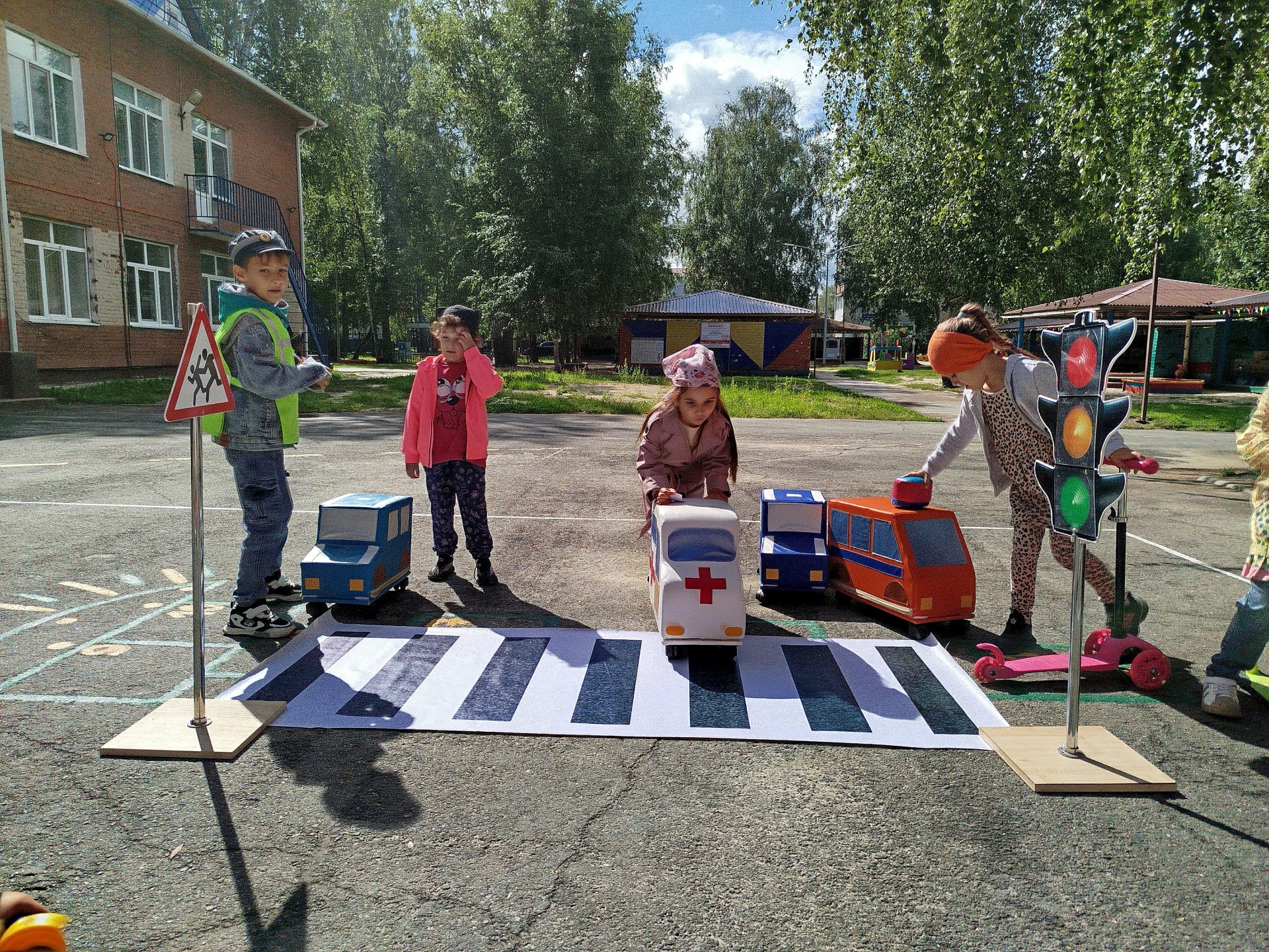 Перед тем, как отправиться в путь, педагоги с детьми повторили знакомые правила, закрепили знания о дорожных знаках, провели игру «Красный, жёлтый, зелёный» и обсудили различные ситуации на дороге.