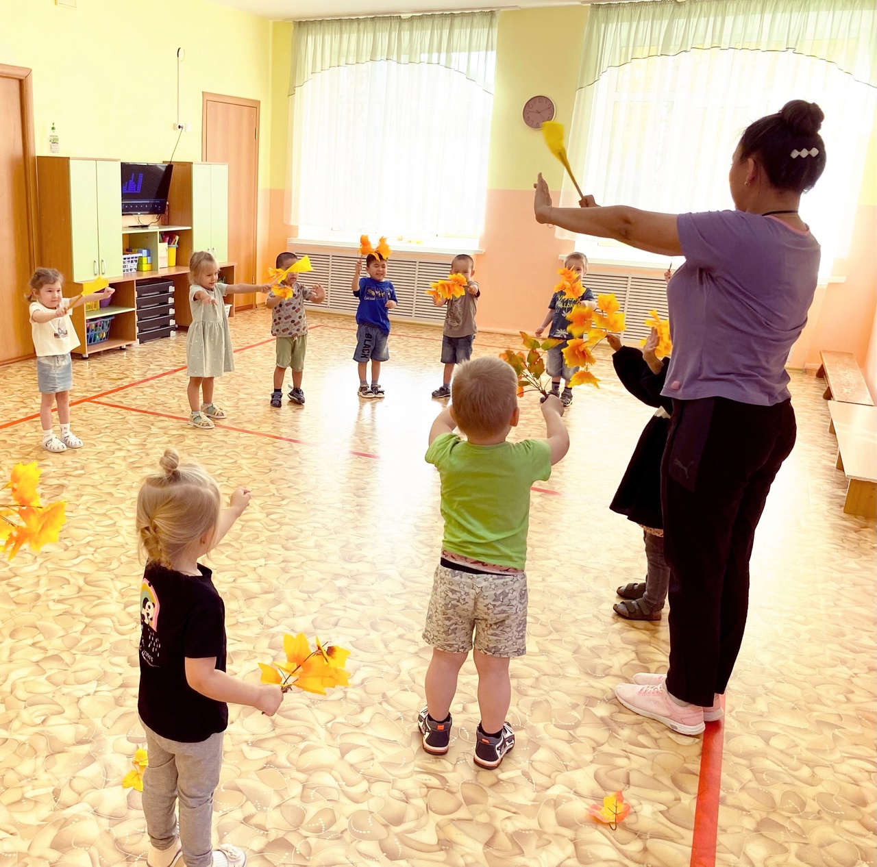 Совместно с физической активностью, мы обсудили с детьми, какие изменения происходят в природе осенью, как листья меняют свой цвет. Это не только способствовало развитию физической активности, но и обогатило знания детей о сезонных изменениях в природе.