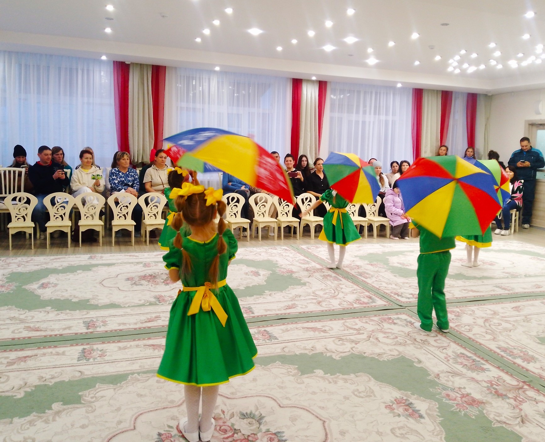 Воспитанники подготовительных групп, под руководством музыкального руководителя Воловиковой Лидии Александровны, для отличного осеннего настроения, подготовили для родителей праздничный танец с зонтиками.