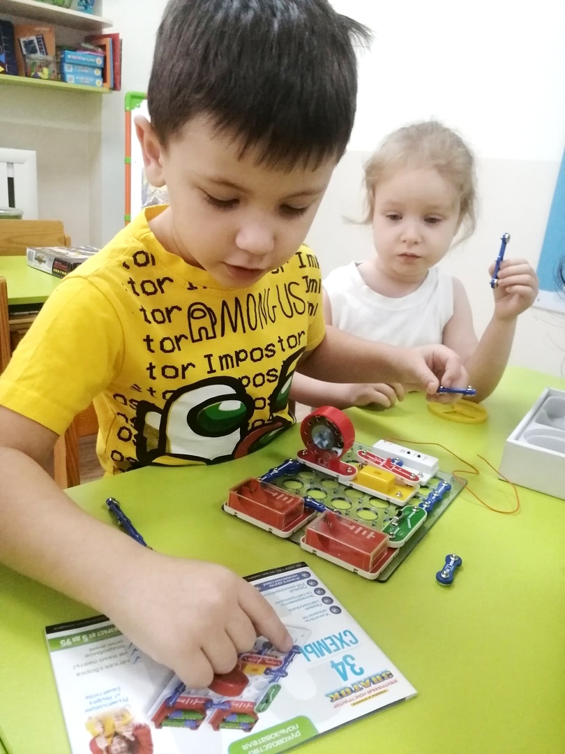 В старшей группе «Рябинка» проходит интересный мини - проект по сборке электронного конструктора «Знаток». В рамках данного проекта мы стремимся развить у детей техническое мышление, креативность, а также навыки работы в команде. Таким образом, дети познакомились с основами электротехники и принципами работы электрических цепей; развивали мелкую моторику и пространственное мышление; формировали навыки сотрудничества и командной работы; развивали интерес к техническим наукам и инженерии. Дети узнали о различных элементах: светодиодах, кнопках, аккумуляторах и других деталях. Каждый элемент был рассмотрен в теоретическом плане, после чего дети смогли увидеть их в действии. Дети были разделены на небольшие группы, что позволило каждому ребенку активно участвовать в процессе. Каждой группе была предложена самостоятельная задача на сборку простых схем. В ходе практических занятий дети собирали модели: светящийся фонарик и звонок. Мы поощряли креативный подход, позволяя детям изобретать собственные конструкции. Все дети проявили большой интерес к процессу сборки и восхищались своими достижениями. Мы отметили улучшение в развитии командного духа и взаимодействии между детьми. Надеемся, что интерес к техническим наукам останется с ними и в будущем.