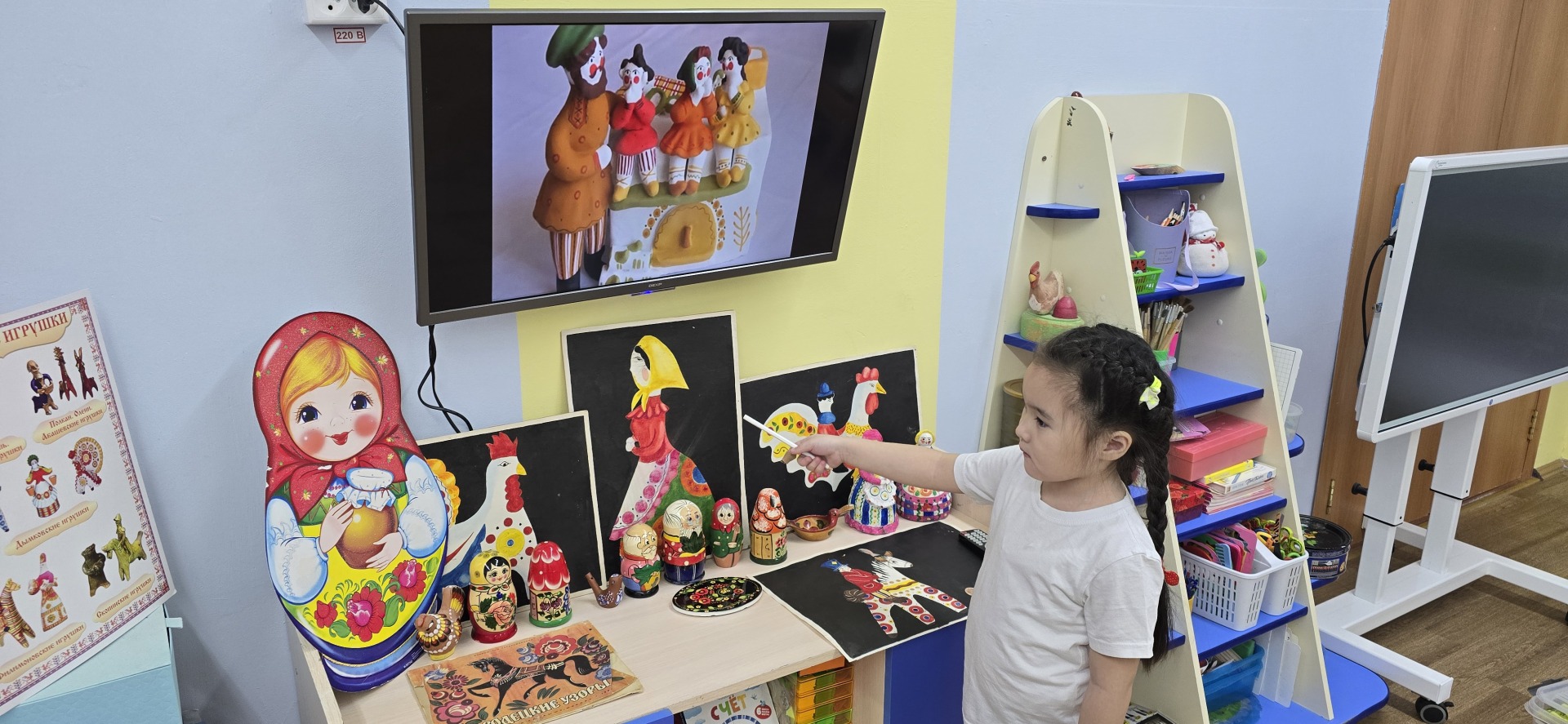 В рамках тематической недели «В гостях у Дымковской игрушки» воспитанники средней группе «Золотой ключик», были включены в творческий проект «Знакомство с дымковской игрушкой».
