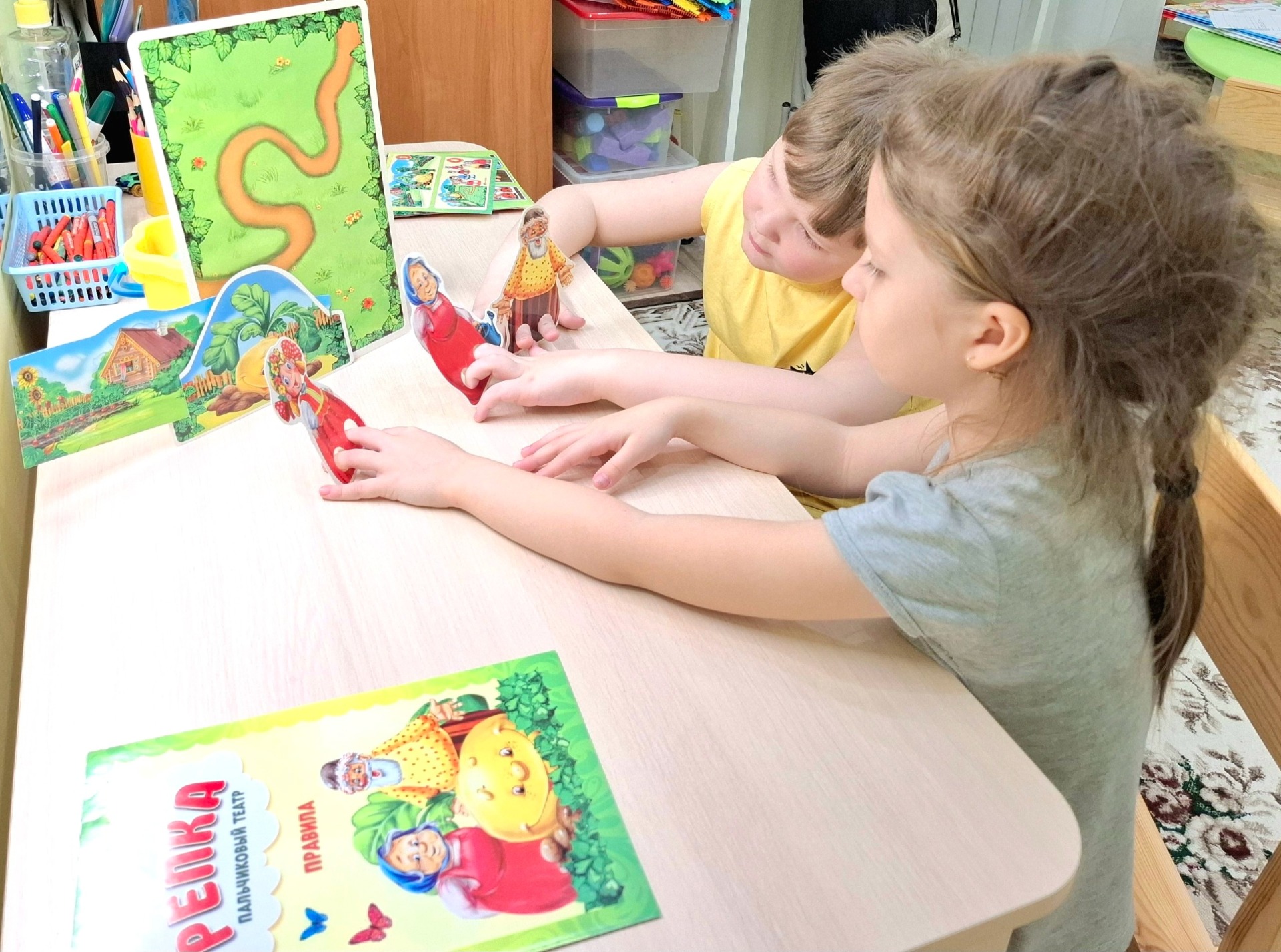 - Инсценировка сказок: Предложите детям инсценировать любимые сказки или придуманные истории. Это развивает фантазию и речь.