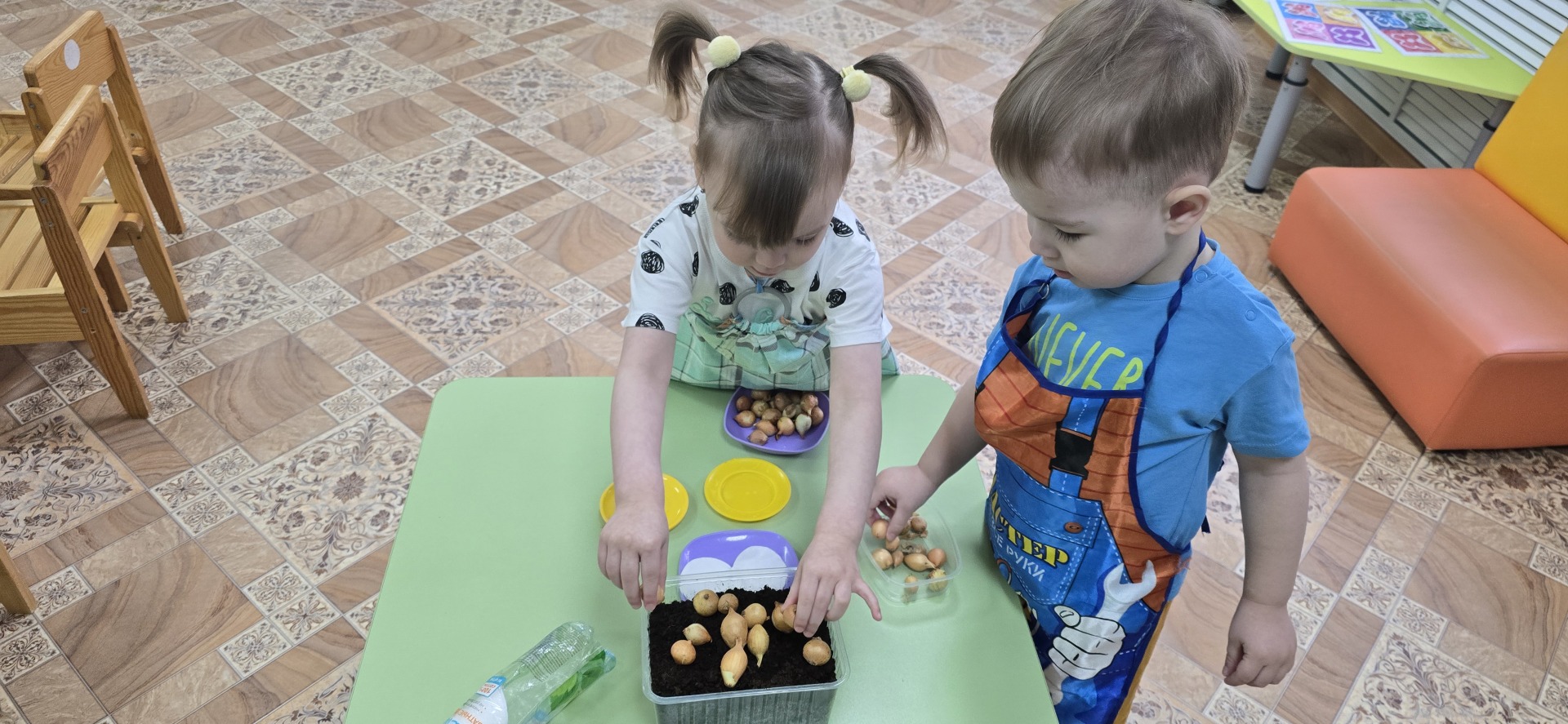 Дети группы раннего возраста «Карамельки» совместно с воспитателями познакомились со свойствами земли, семенами цветов и лука, побеседовали на тему «Что можно посадить в огороде», а также нарисовали собственный лук с зелеными перышками, поиграли в дидактическую игру «Овощи и фрукты».