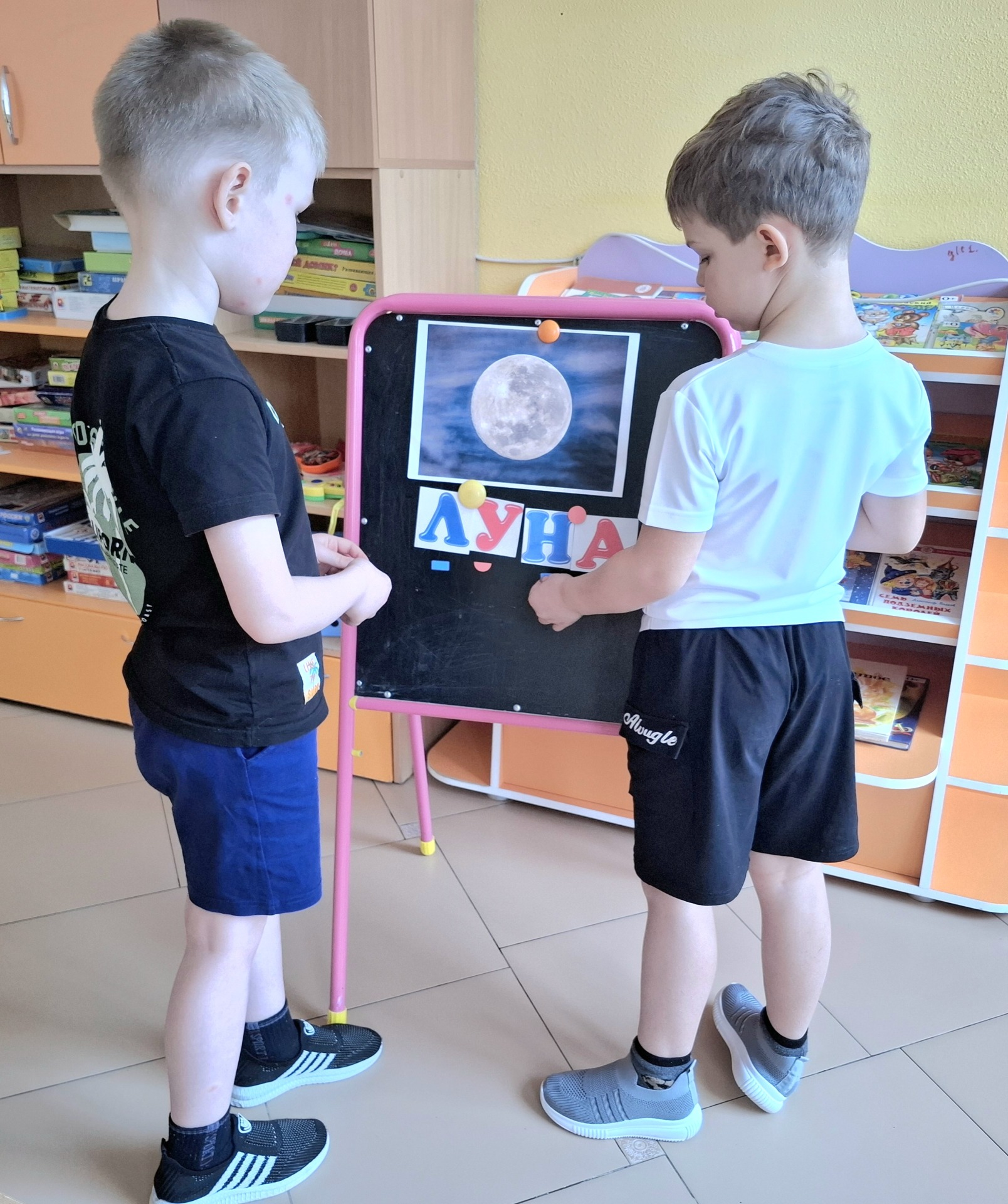 Просмотрев красочные изображения планет и космических объектов, ребята с удовольствием играли в игру с мячом «Продолжи слово», при этом учились восстанавливать слова. Играя в дидактическую игру «Семейка слов», дети упражнялись в подборе родственных слов. Задание, посвященное звуковому анализу, которое выполнили все ребята, помогло им развить навыки фонематического восприятия и повысить их речевую активность.
