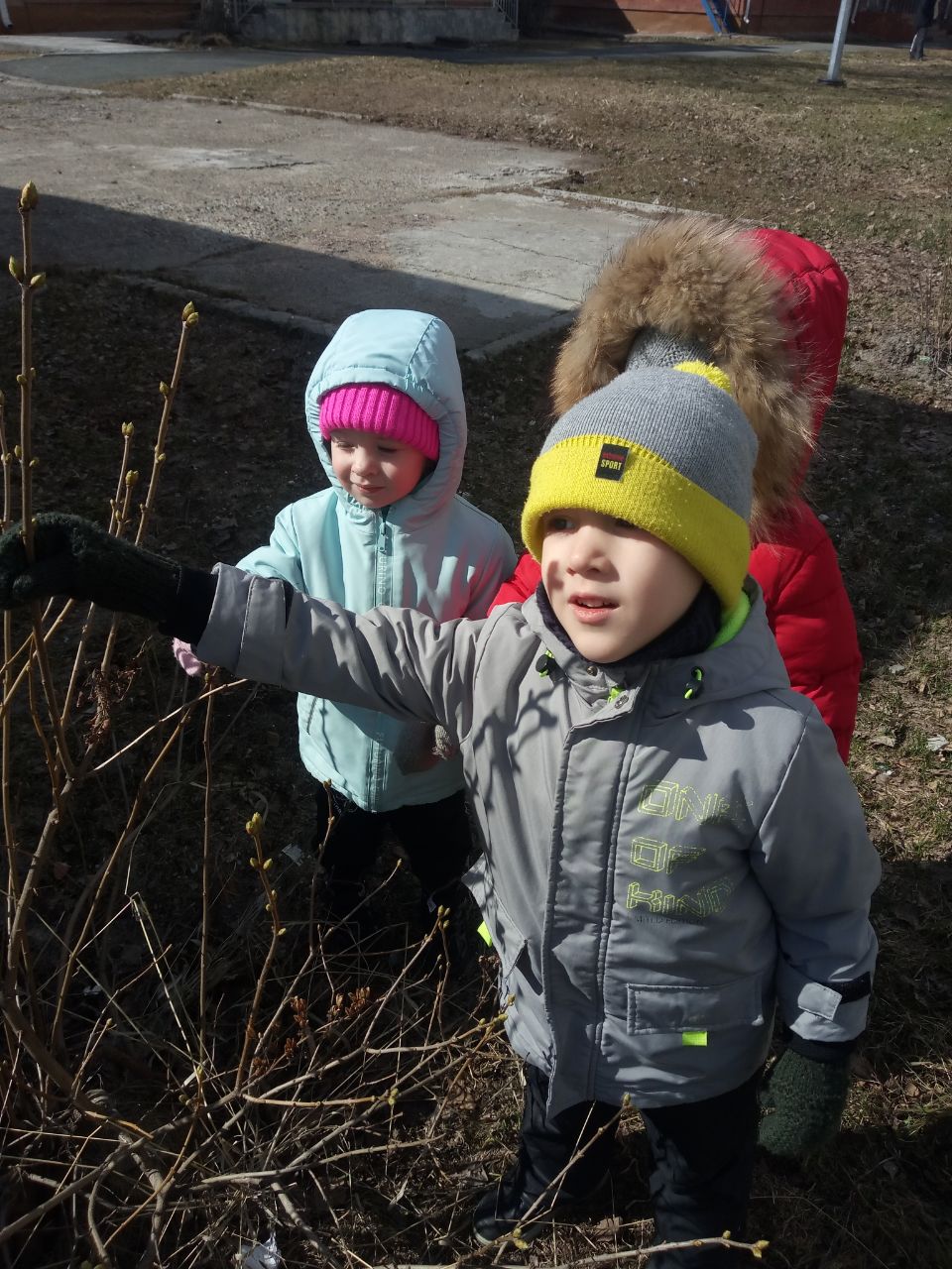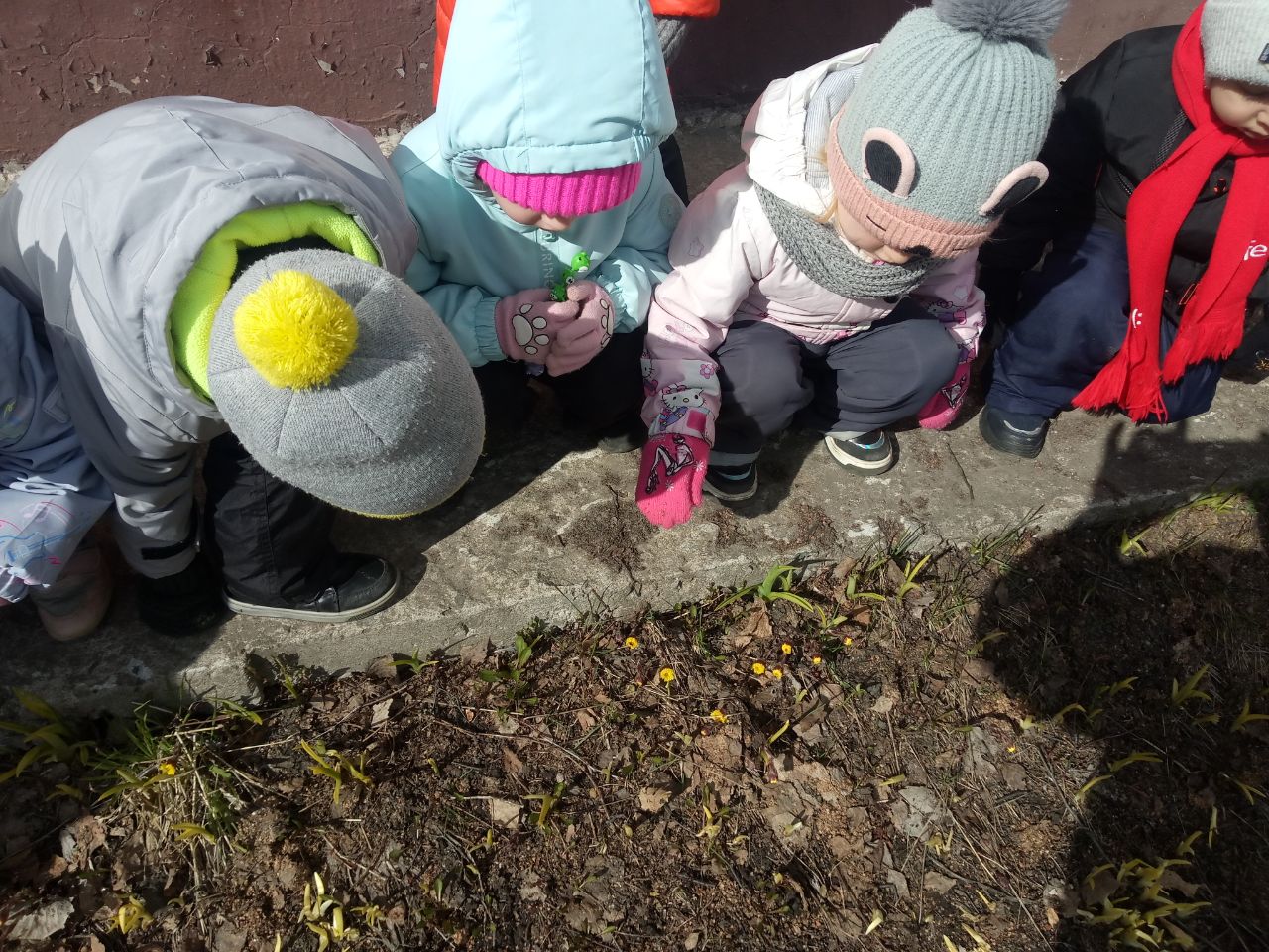 Ребята группы «Сказочный теремок» с удовольствием «превратились» в исследователей и отправились на экскурсию вокруг детского сада. Они рассматривали и любовались появившимися первоцветами, наблюдали за насекомыми, проснувшимися после зимней спячки.