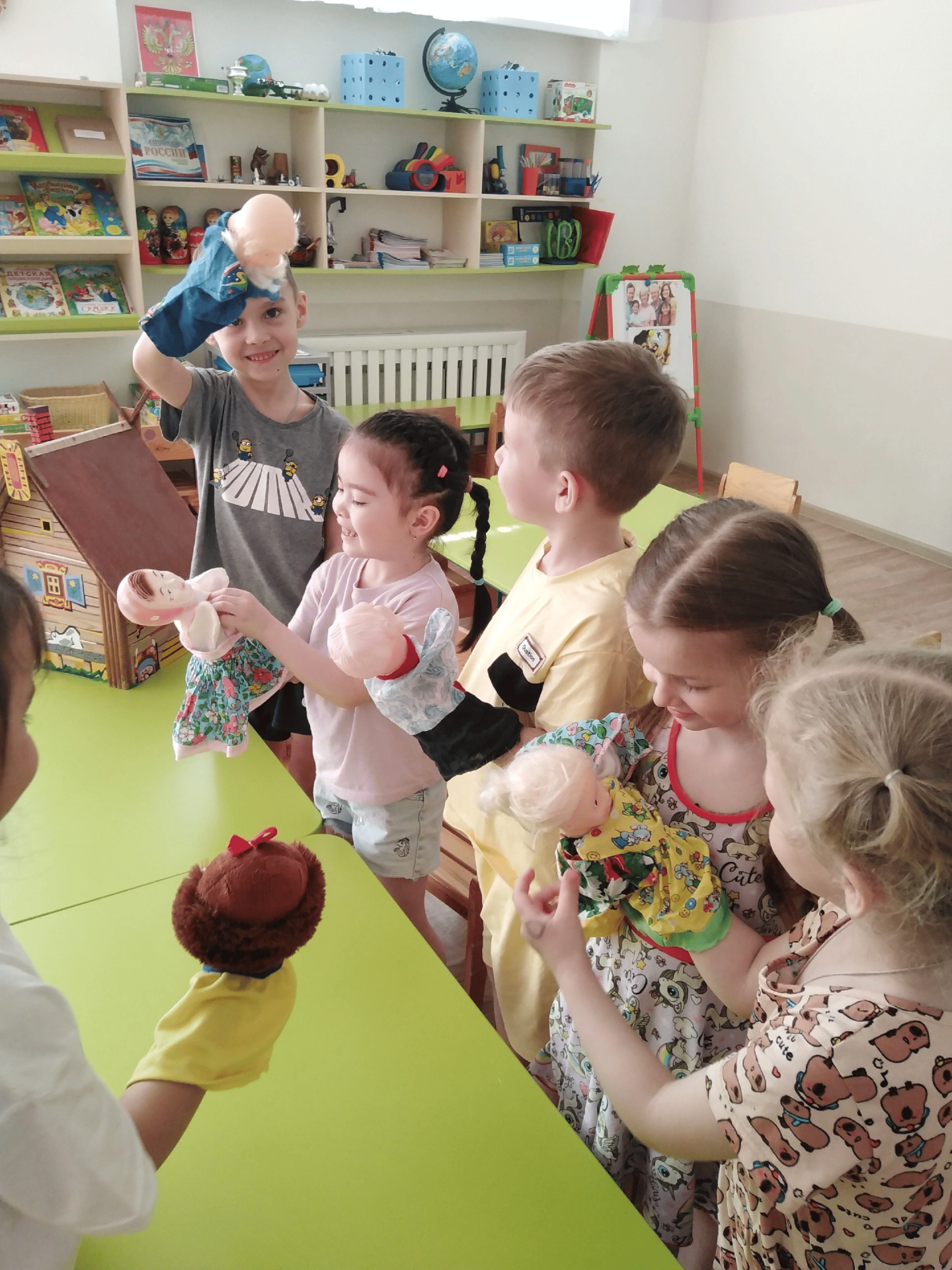 Посмотрели видео- презентацию, поиграли в сюжетно- ролевую игру “Моя семья”, через театрализованную деятельность (кукольный театр).