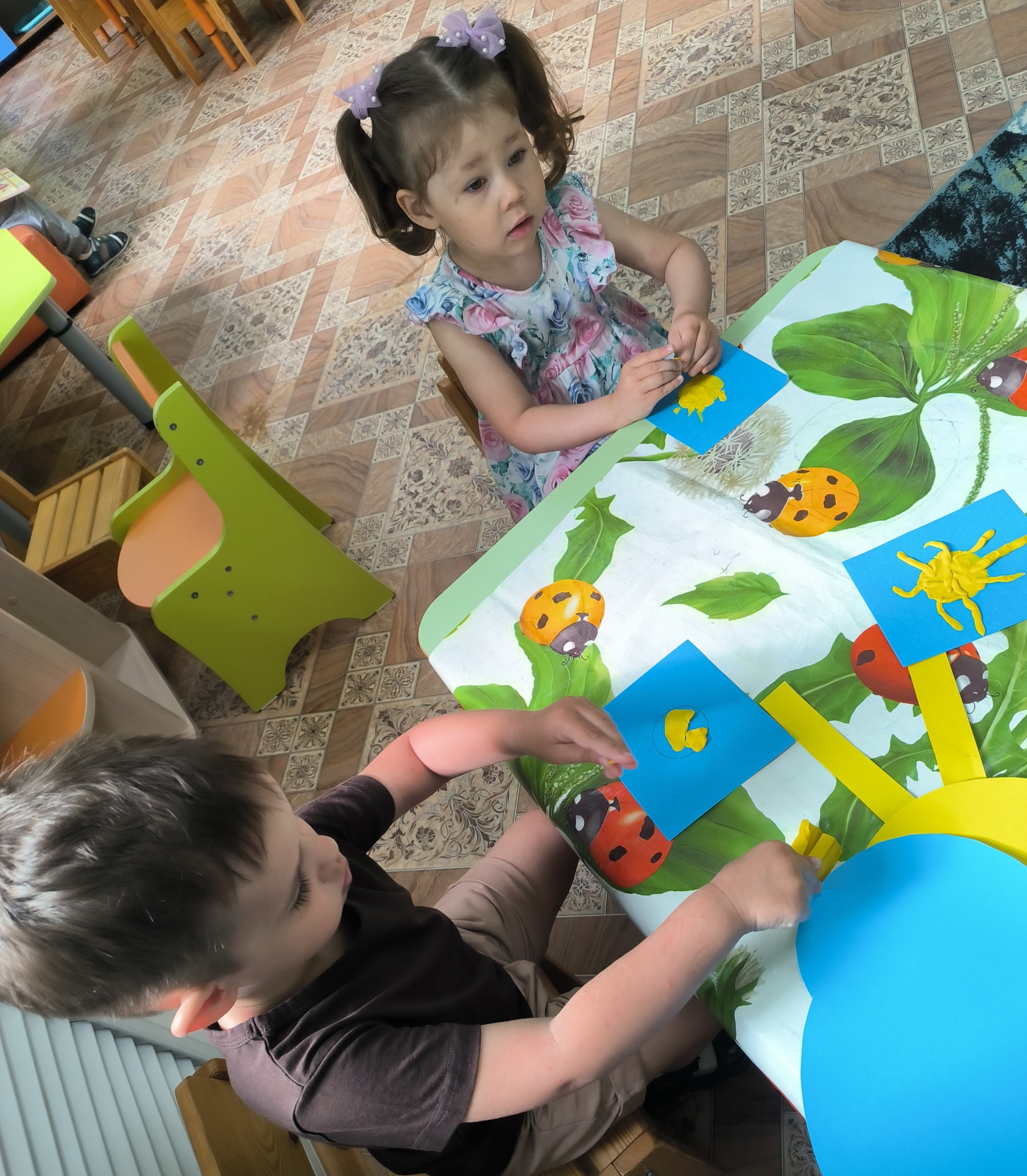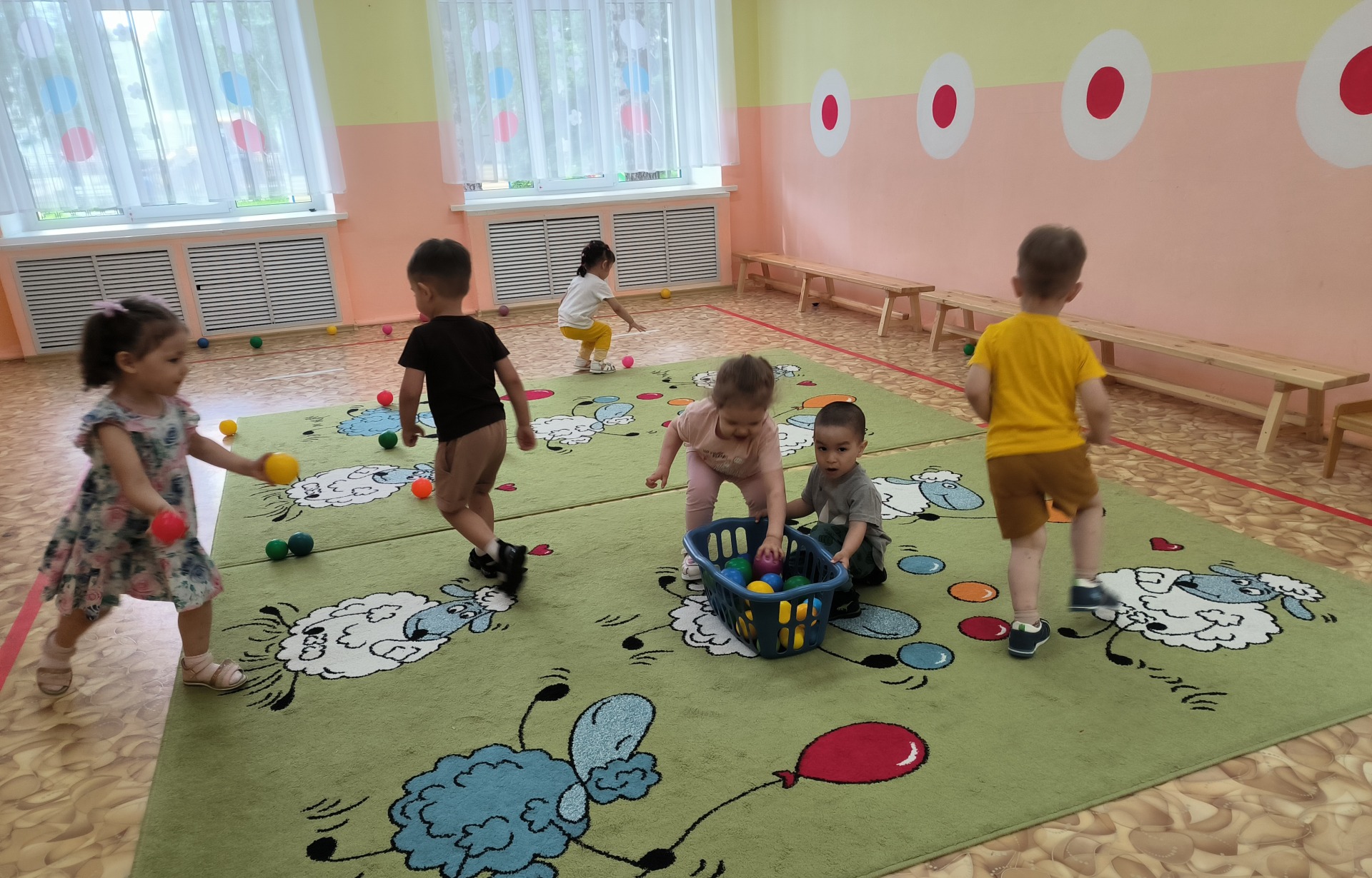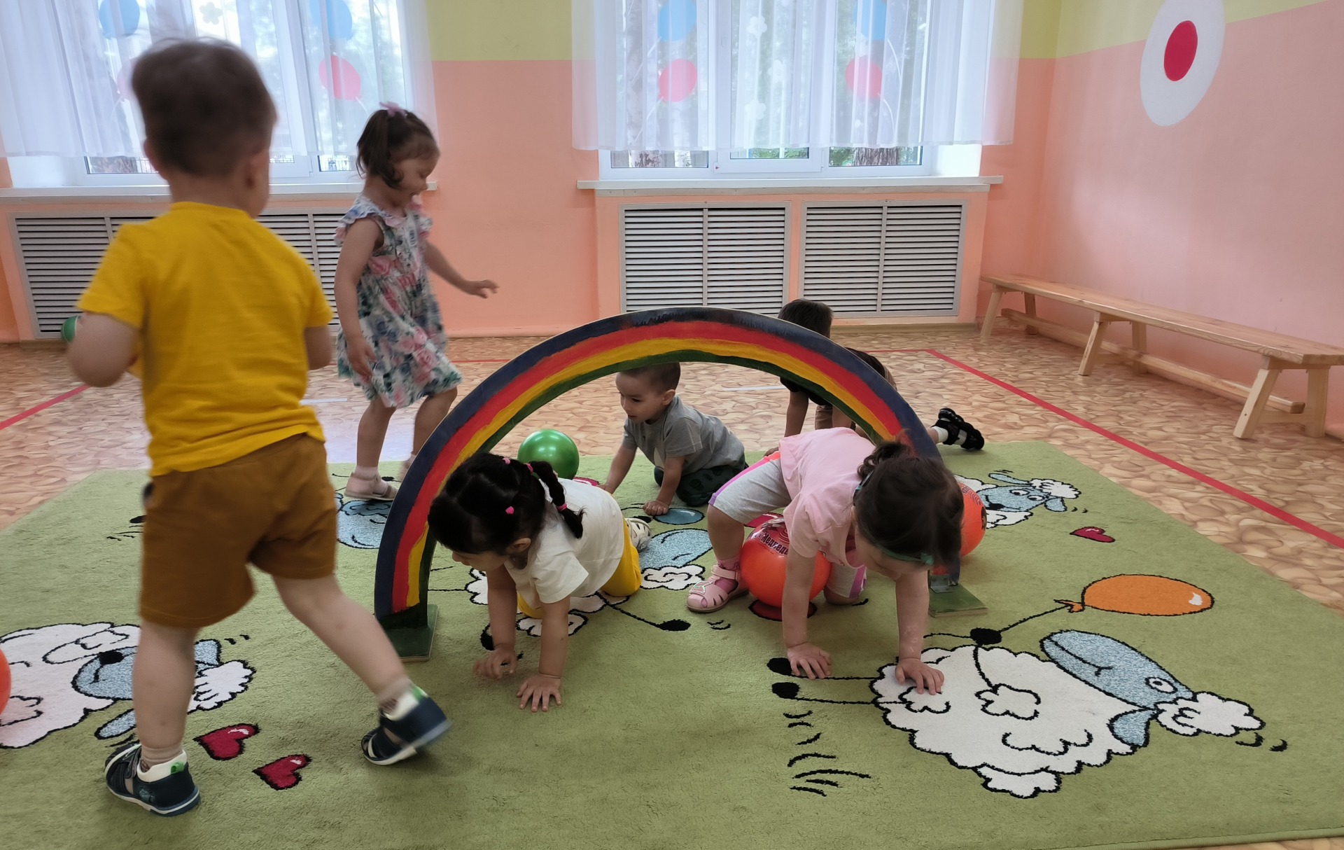 У малышей группы "Карамельки" появилось настоящее летнее настроение! Ребята с большим удовольствием и радостью играют в спортивном зале. В первые летние дни, не смотря на пасмурную погоду за окном — это отличная возможность для активных подвижных игр, дети пролезают под яркой радугой, перебираются через разные препятствия и играют с мячами и самостоятельно, как большие собирают мячики в корзину. Такие игры помогают развивать координацию, ловкость и командный дух. Также в группе наши маленькие творцы создавали солнечные шедевры с помощью пластилина. Лепили яркое солнышко — это не только весело, но и очень полезно для развития мелкой моторики и воображения.