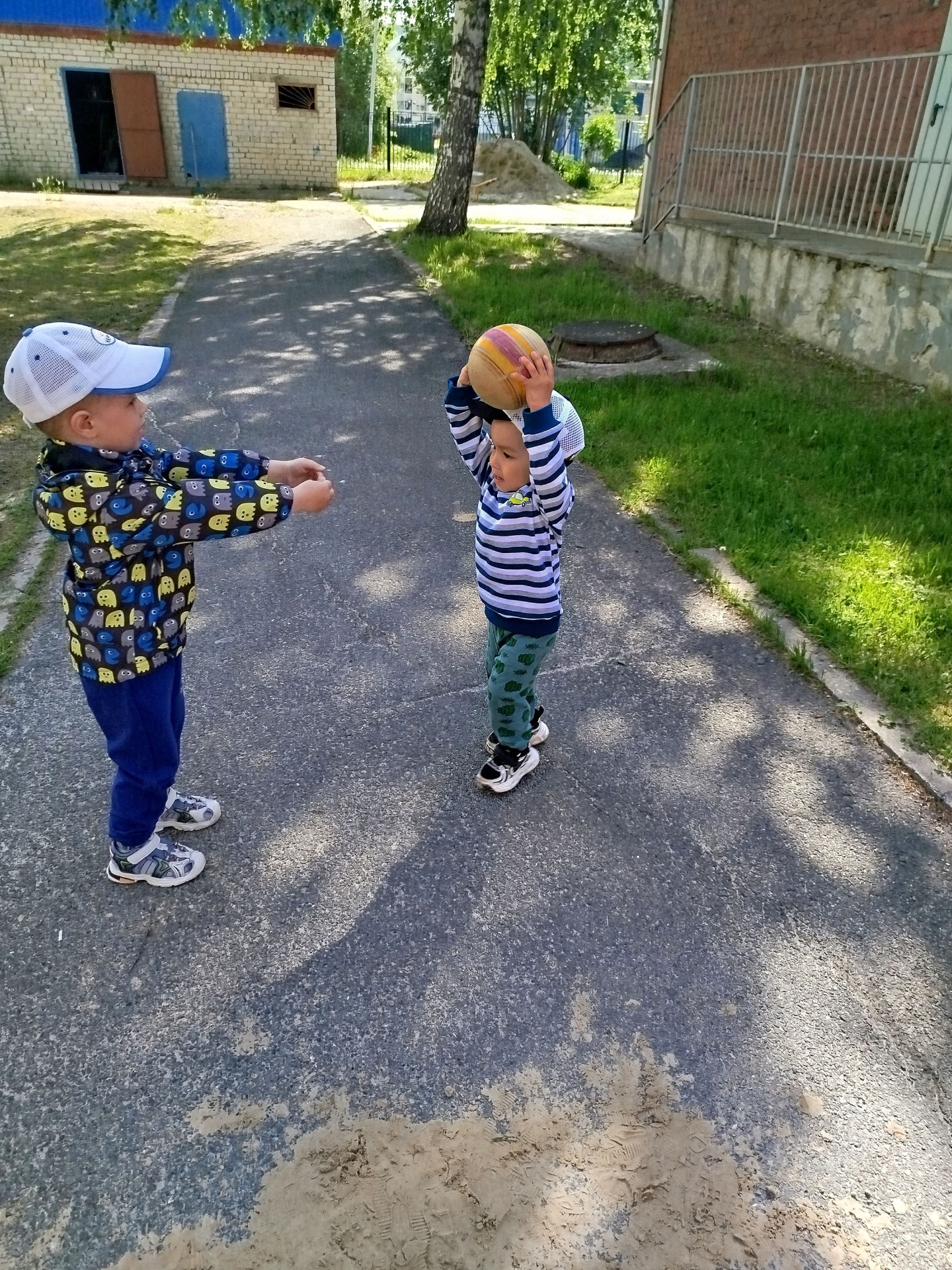 Малыши учатся метать мяч, развивая координацию и ловкость. Игра способствует развитию моторики и командного взаимодействия.