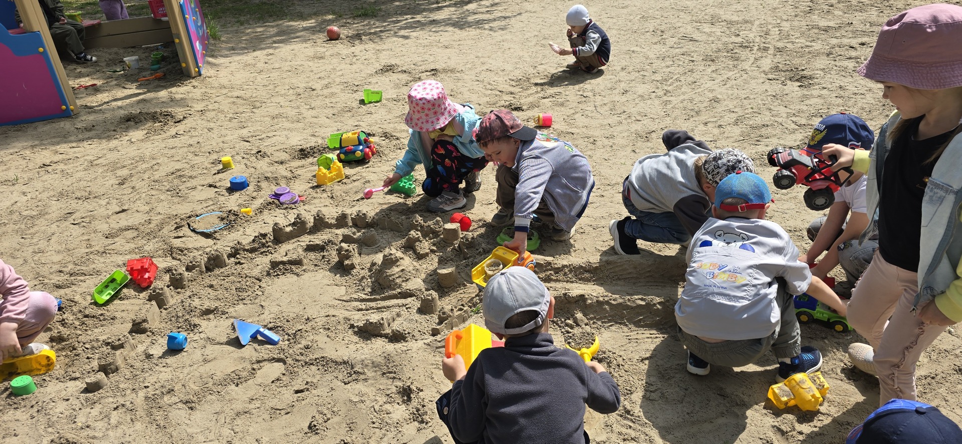 Дети старшей группы «Золотой ключик» получили задание - построить из песка фантастический город будущего. В самом начале строительства ребята вспомнили правила поведения в песочнице, поговорили о свойствах песка, о предстоящей работе.