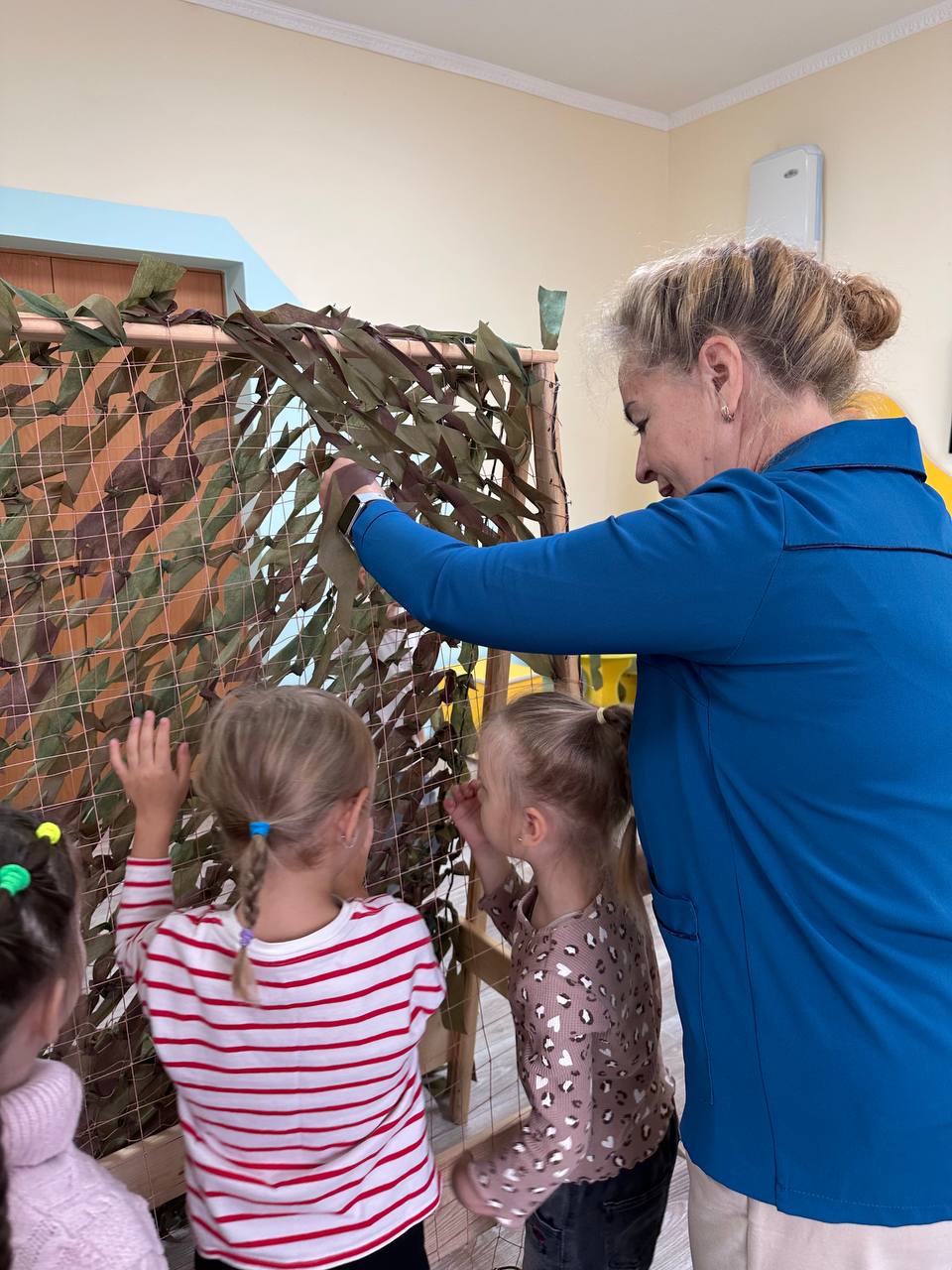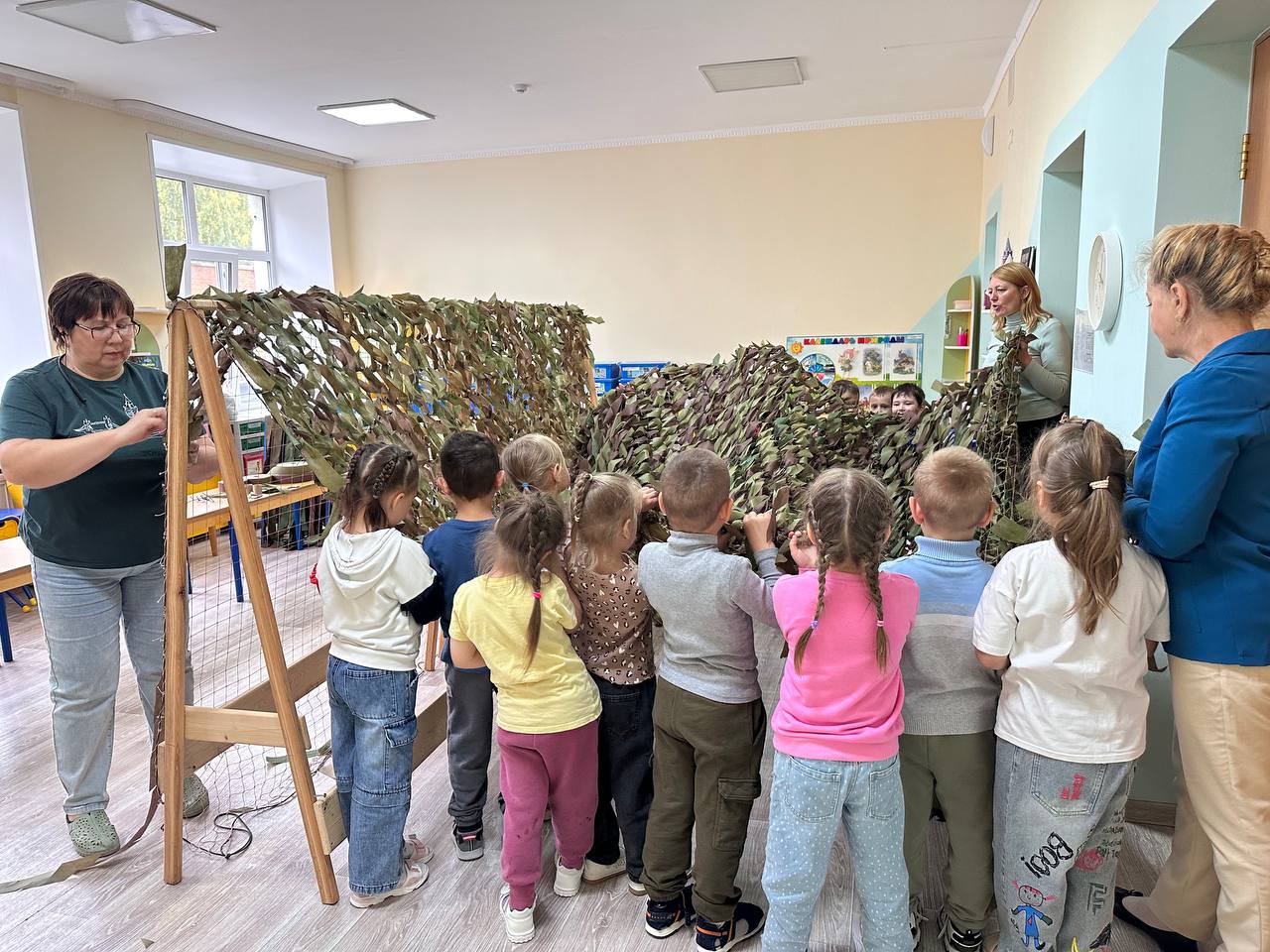 «Плетение маскировочных сетей – это возможность принять участие в спасении жизни наших воинов». В рамках акции #МЫВМЕСТЕ воспитанники и сотрудники нашего детского сада совместно с волонтерской группой «Оберег», объединились и организовали плетение сетей для наших солдат.