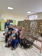 Ребята старшей группы «Золотой ключик», решили попробовать свои силы и принять участие в таком важном деле, как оказание помощи в плетении маскировочных сетей.