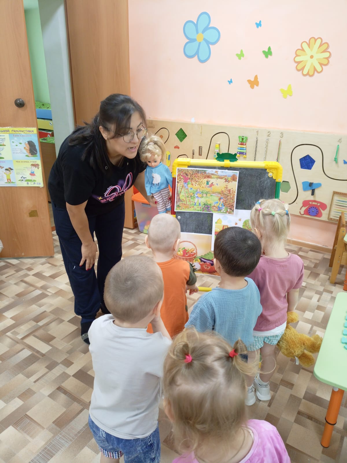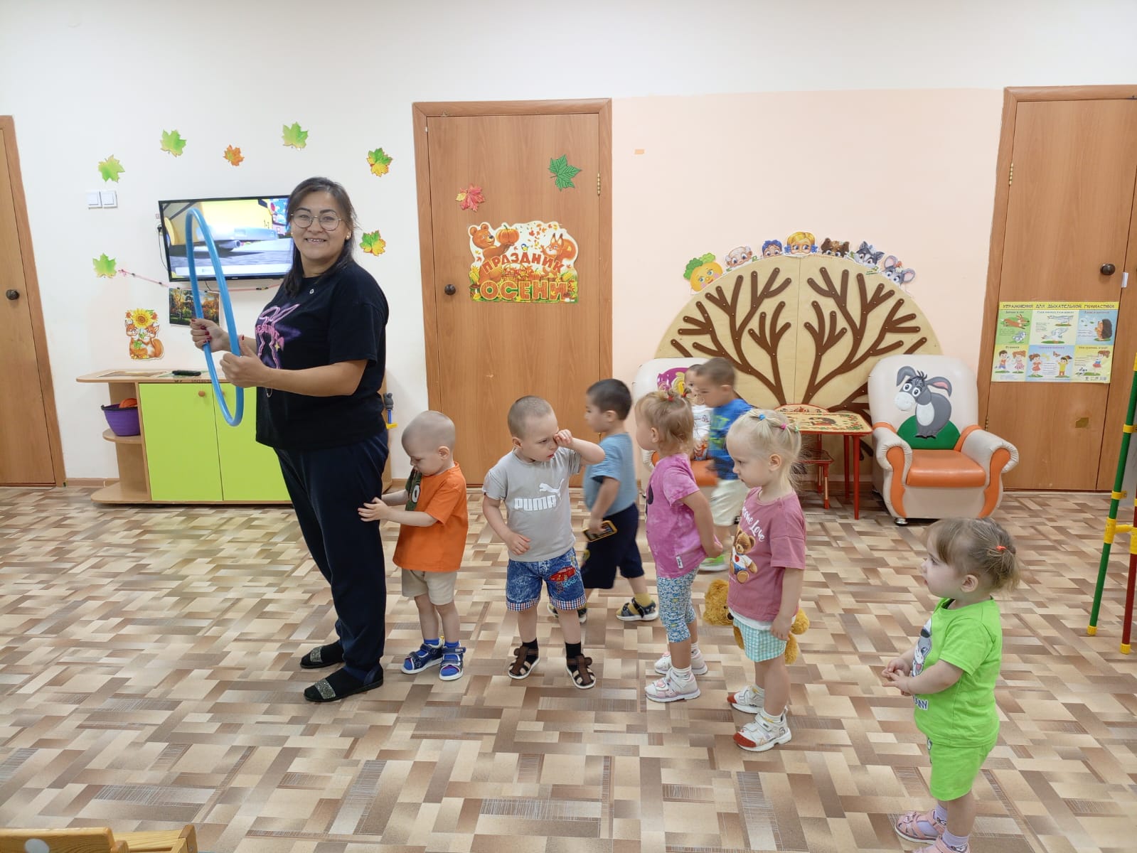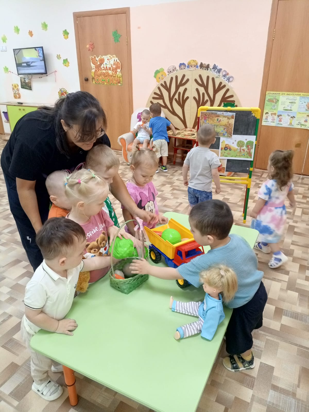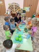 Во время игры мы познакомились с пальчиковой игрой "Капуста", где малыши учились согласовывать слова с движениями, это развивает моторику и память.