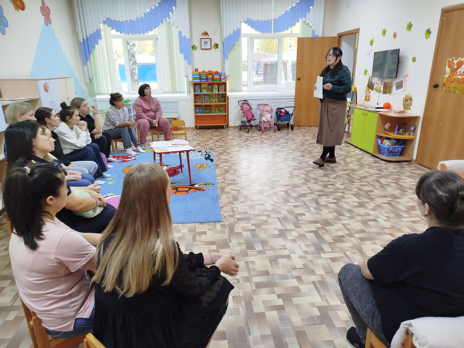 Увлекательная игра «Ходит солнышко по кругу» помогла родителям ближе познакомится друг с другом. Такая активность помогает установить доверительные отношения и создать добрую атмосферу в группе. Родители смогли пообщаться, лучше узнать друг друга и почувствовать поддержку.