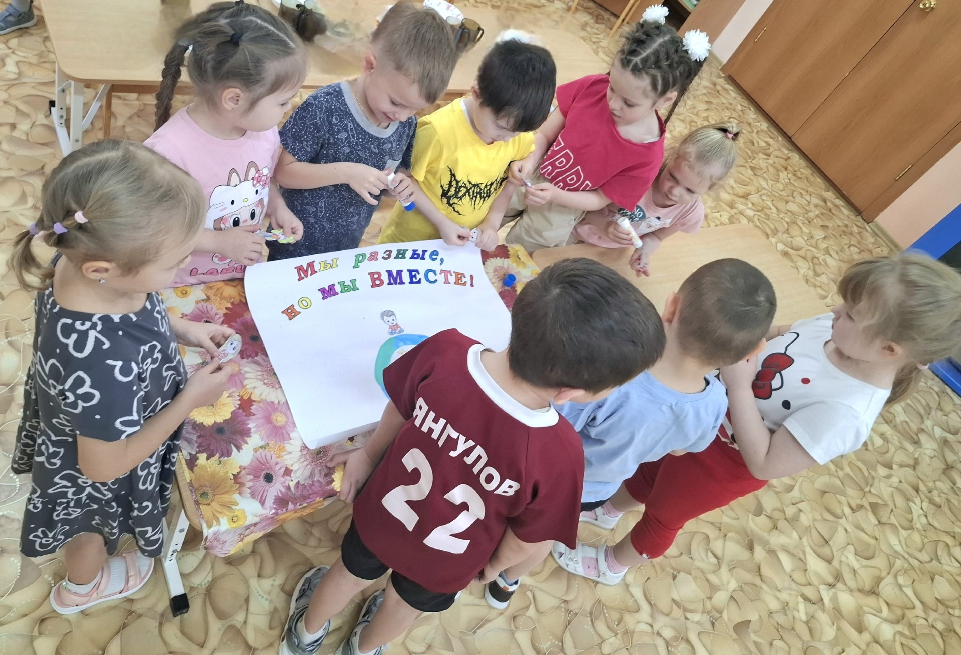 В рамках Акции «Мы разные, но мы вместе!», посвященной Международному дню инвалидов в старшей группе «Золотой ключик» прошел приятный просмотр мультфильма по сказке В. Сутеева «Грибок-теремок». Ребята с интересом следили за приключениями героев. После просмотра мы обсудили увиденное, поделились впечатлениями и рассказали, чему научились. Затем мы совместно с группой компенсирующей направленности «Волшебники» создали красочный плакат для предстоящей выставки рисунков «Сказка в каждый дом». Дети с большой уверенностью и увлечением занимались творческим процессом, проявляя фантазию и командный дух. Совместная работа помогла детям лучше понять ценность дружбы, взаимопомощи и терпимости. В итоге получился яркий и оригинальный плакат, который непременно привлечёт внимание посетителей и станет важной частью выставки. Объединяя усилия, мы стараемся прививать у наших воспитанников чувства дружбы, доброты, отзывчивости, готовности прийти на помощь любому. Автор материала: Кульмаметьева О.И., учитель-логопед