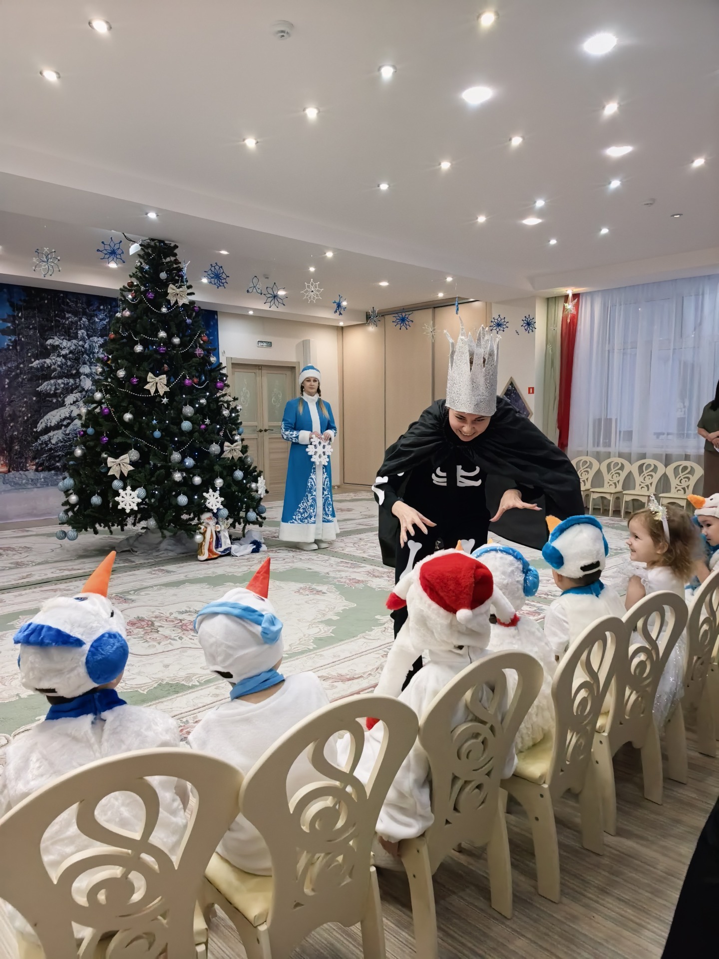 В средней группе «Сказочный теремок» дети с нетерпением ждали новогодний утренник, активно готовились к встрече с Дедом Морозом. И вот долгожданный день наступил. Но что это? Хрустальную снежинку, благодаря которой должен был состоятся праздник, разбил и раскидал по разным сказкам злой Кощей, он-же заколдовали и украл Снегурочку. Чтобы уничтожить злые чары и воссоединить части чудесной снежинку в которой спрятана новогодняя песенка,которая поможет вернуть на праздник Снегурочку, ребятам нужно было выполнить задания. Они очень старались: водили новогодние хороводы, исполнили веселый танец снеговиков и нежный танец снежинок, поиграли с Дедом Морозом, прочитали новогодние стихотворения. И, о чудо: сердце злодея оттаяло, и Кощей отдал ребятам последний кусочек хрустальной снежинки.