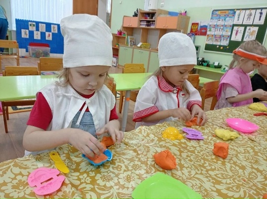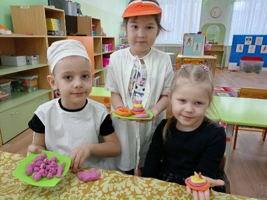 Сегодня в средней группе "Сказочный Теремок " прошло интересное и познавательное занятие по теме " Профессии". Ребята познакомились с профессией кондитера. Узнали, чем занимается человек этой профессии и с большим воодушевлением примерили на себя роль маленьких кондитеров. Ребята учились работать с цветным солёным тестом : готовили красивые и вкусные изделия, такие как печенье, тортики, пирожное.