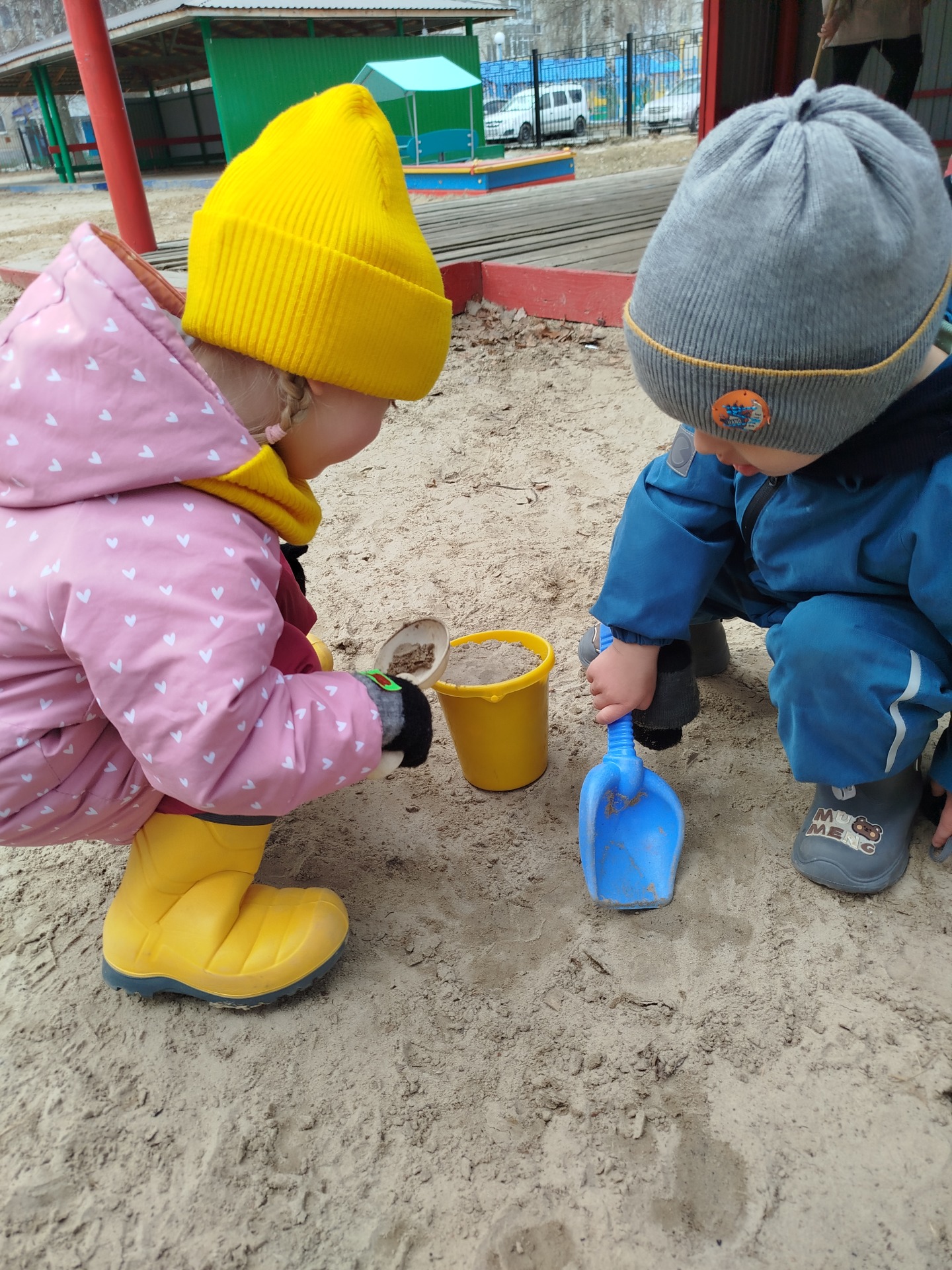 Маленькие творцы создавали свои уникальные куличи и фигурки из песка. Такая деятельность помогает развивать мелкую моторику рук и фантазию.