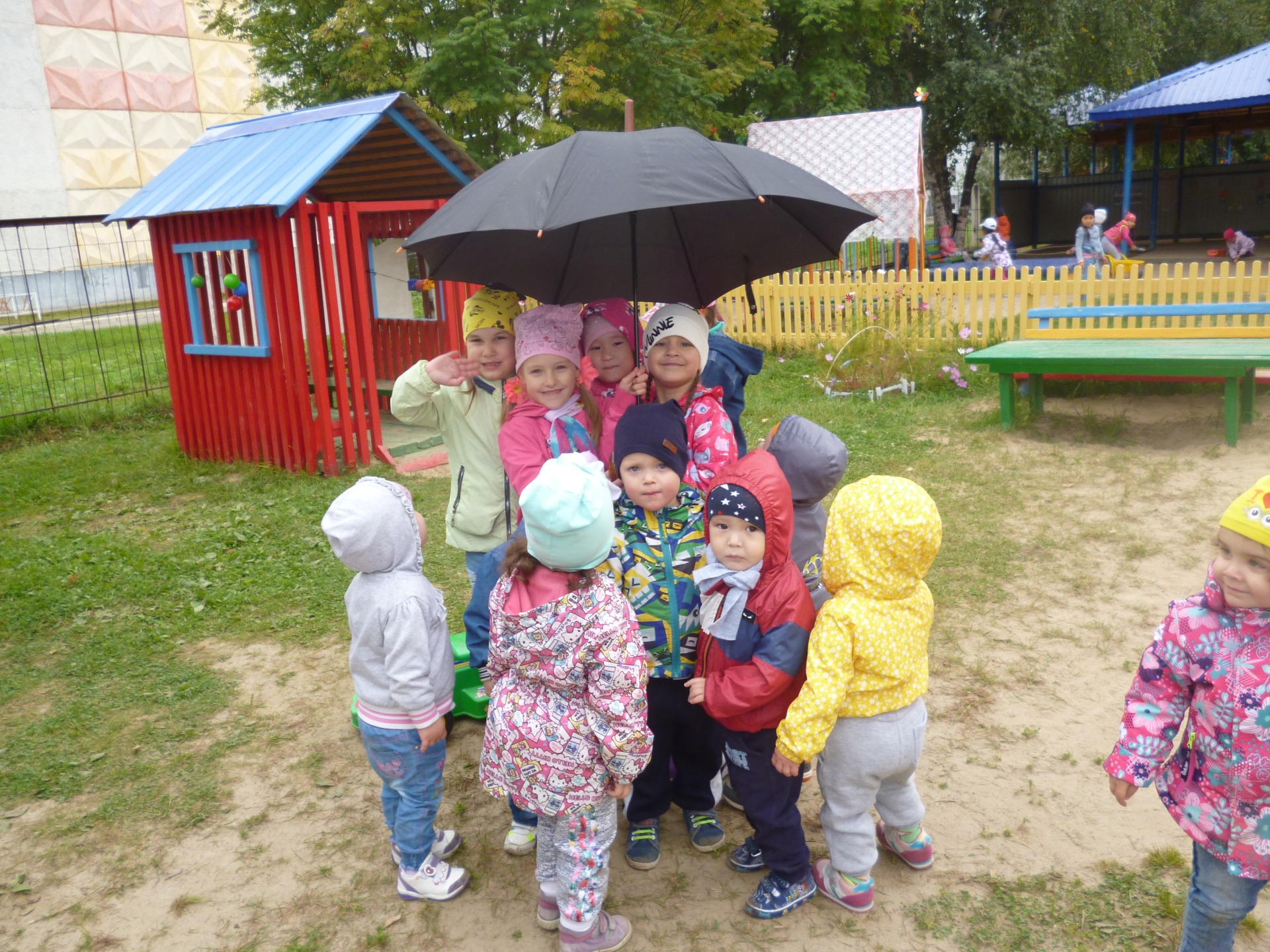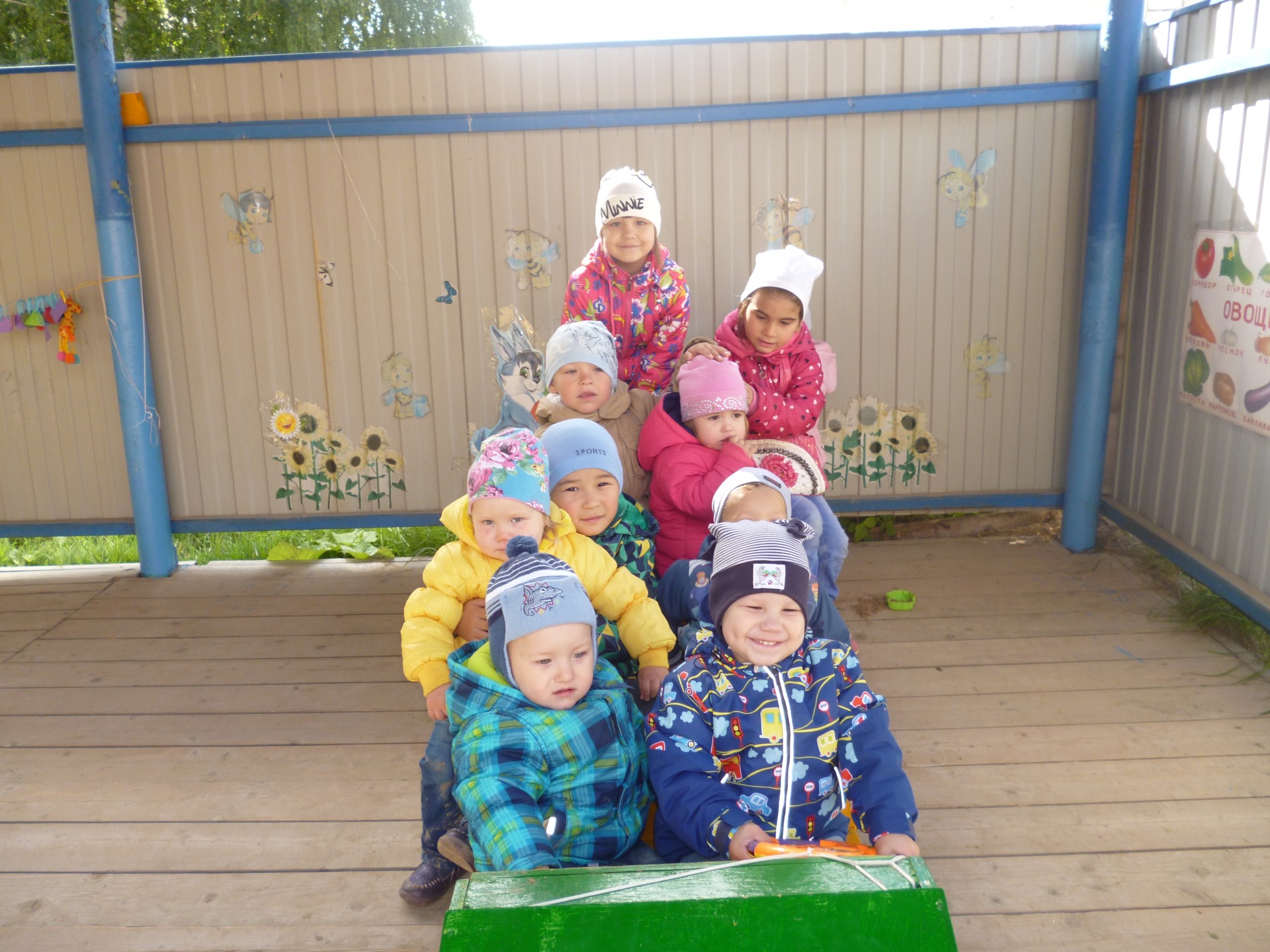 Подросли ребята, которые гуляют на соседних участках. С большим удовольствием они приходят в гости к самым маленьким деткам, играют с ними, проявляют по отношению к ним заботу и опеку. Наши маленькие «топотушки» охотно идут на контакт, пытаются принимать на себя новые формы взаимодействия, активно играют с более старшими детьми в песочнице, катаются на машине, плавают на кораблике, бросают и ловят мячи, догоняют обручи, играют в подвижные игры…