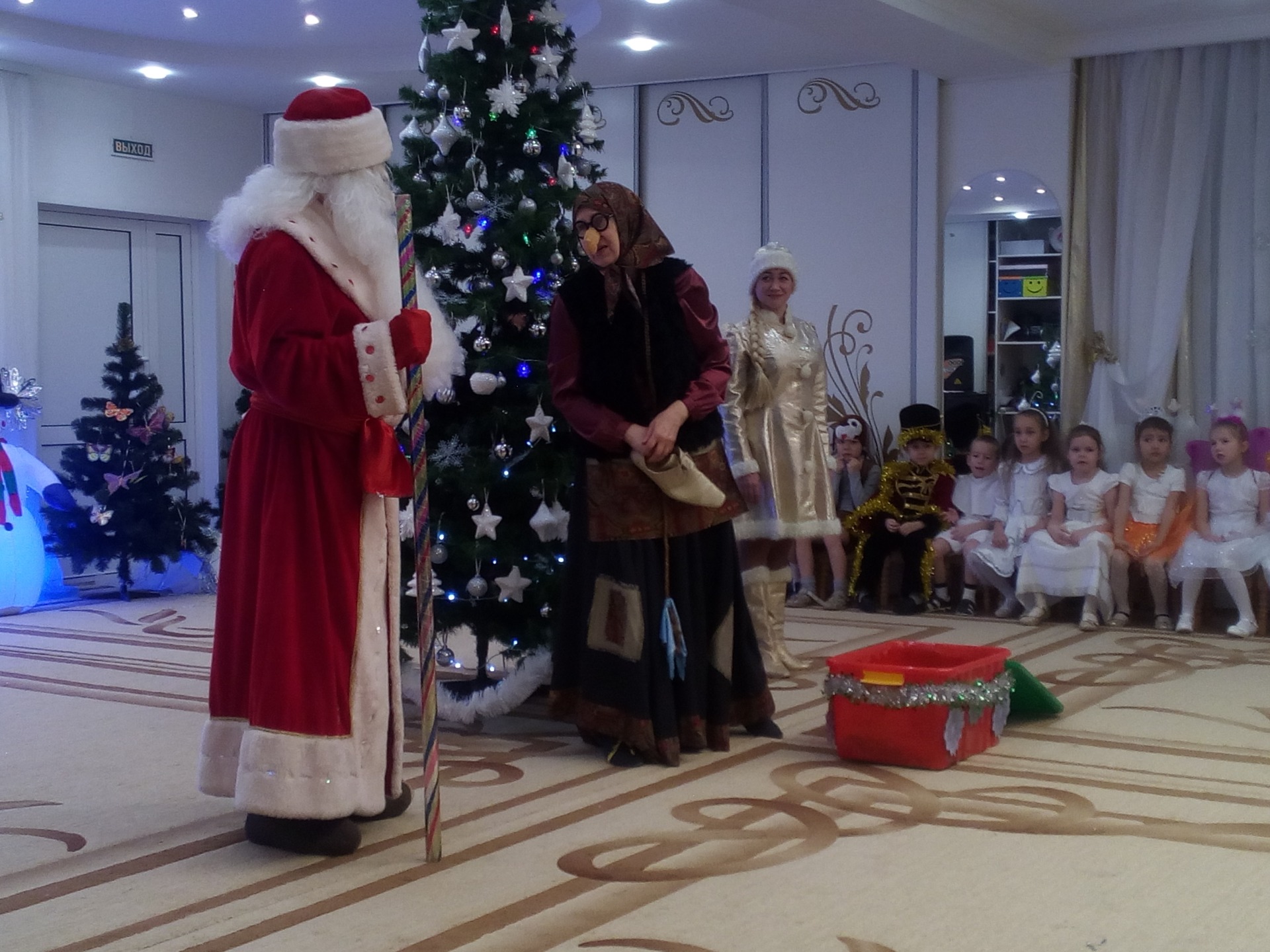На празднике у старших ребят, откуда не возьмись, появилась Баба Яга. Все знают, что от неё добра не стоит ждать, украла она все подарки и решила оставить себе. Но, не тут- то было, Дед Мороз чуть не превратил злодейку в муху, чем очень сильно позабавил детей. Конечно, после такого, Яга вернула украденные сладости, все были рады и пустились в пляс