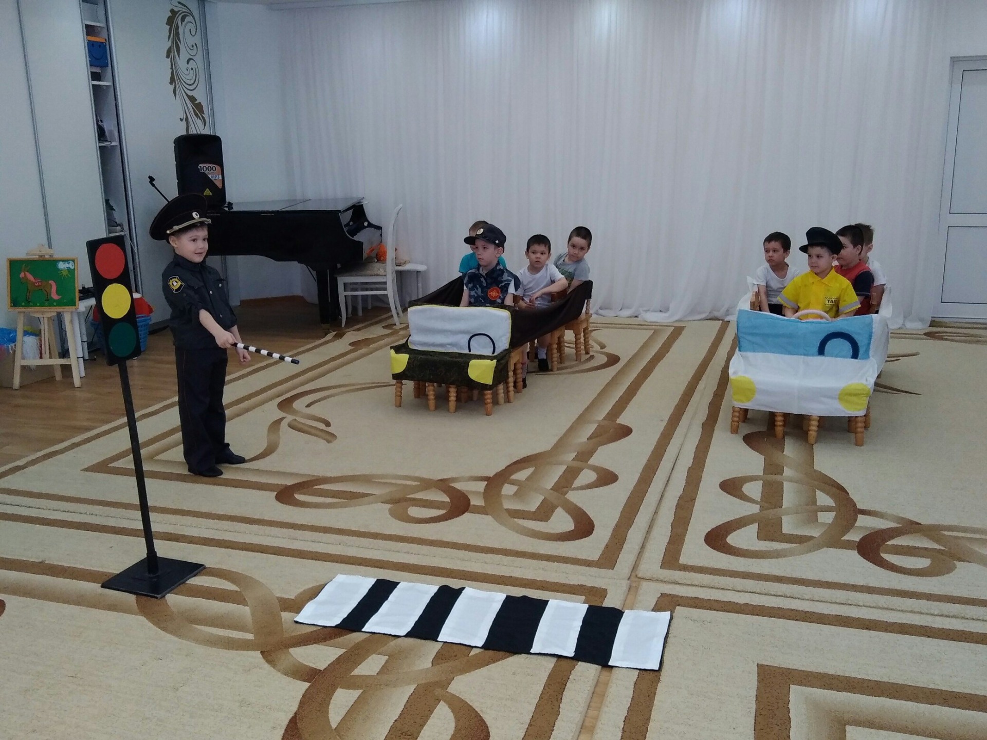 Итогом тематической недели стала сюжетно-ролевая игра, где дети с удовольствием принимали на себя роли водителя, полицейских, пассажиров, контролёров и др., взаимодействовали, общались, представляли себя взрослыми.