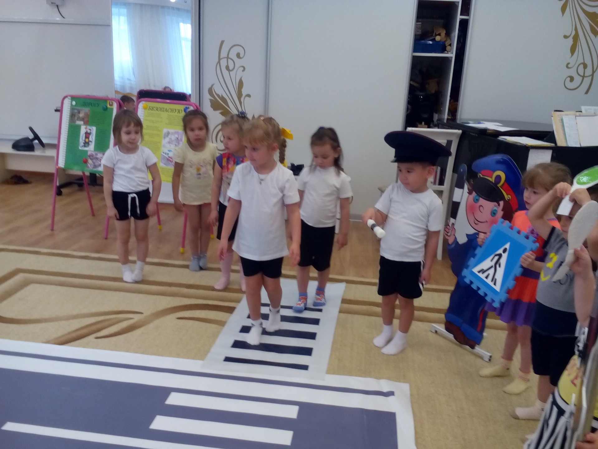 В нашем детском саду прошла неделя «Безопасная дорога». Чтобы уберечь ребенка от несчастных случаев в различных ситуациях, необходимо научить его безопасному поведению. С этой целью мы проводим познавательные беседы и создаём игровые ситуации по темам: «Правила маленького пешехода», «Правила безопасного поведения на улице», «Вот эта улица, вот этот дом», «Где должны играть дети», направленные на формирование первоначальных навыков поведения на улице.