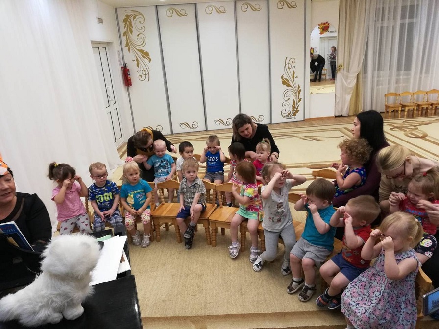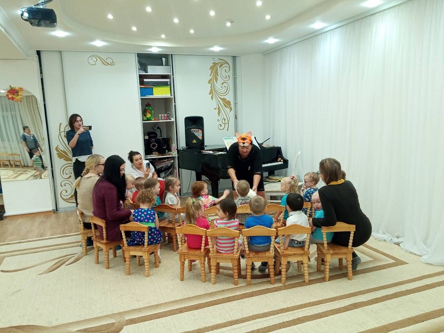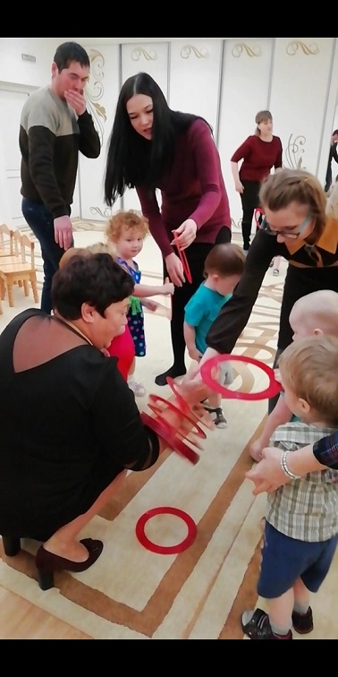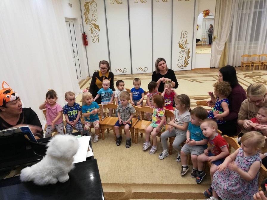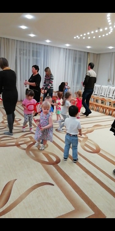 Родители вместе со своими детьми пели, хлопали, топали, кружились, делали «пружиночки», ножки выставляли, выполняли танцевальные движения, очень старались выполнять все движения вслед за руководителем. Пусть немного, но все мамы с удовольствием побывали в стране детства. Главное, что они убедились в том, что эти занятия очень важны для малышей, что им они очень нравятся, поднимают настроение, и это немаловажно, а самое главное, помогают детям развиваться в их индивидуальном темпе.