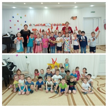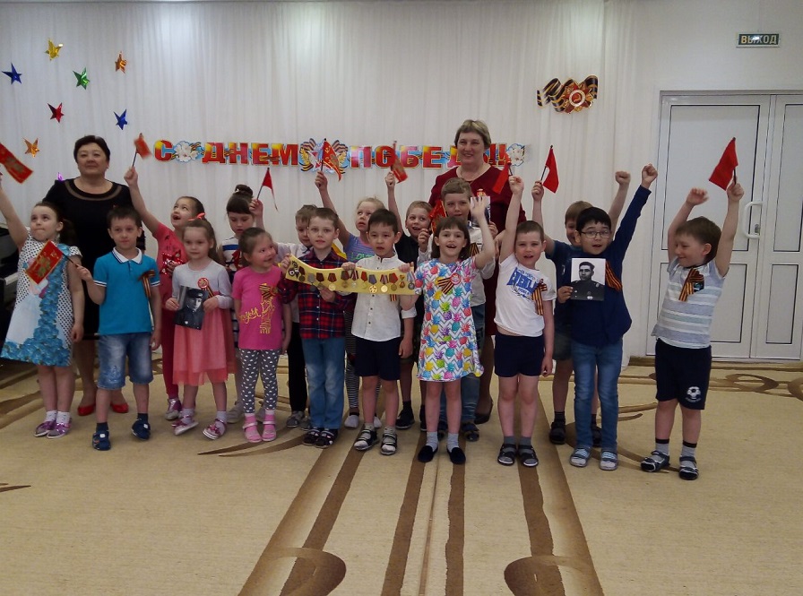 Музыкальный руководитель Нина Сергеевна рассказала детям о своем папе, военном летчике, показала его фотографии и медали. Мероприятие завершилось торжественным исполнением песни «День Победы»