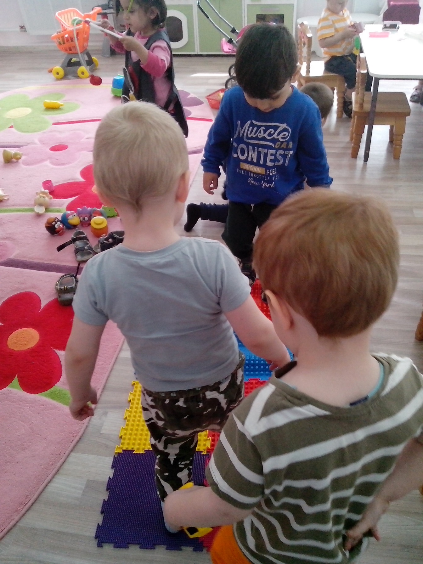 Разноцветные веселые коврики помогли ребятам научиться определять основные цвета и геометрические фигуры.