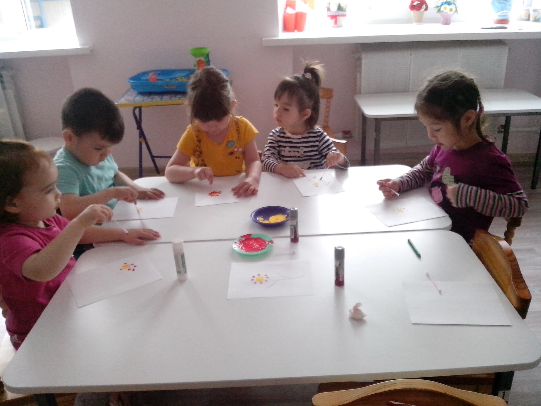 Летом расцветают яркие цветы. Вот какой букет у нас получился! Дети познакомились с приёмами рисования– примакивание, точкование.