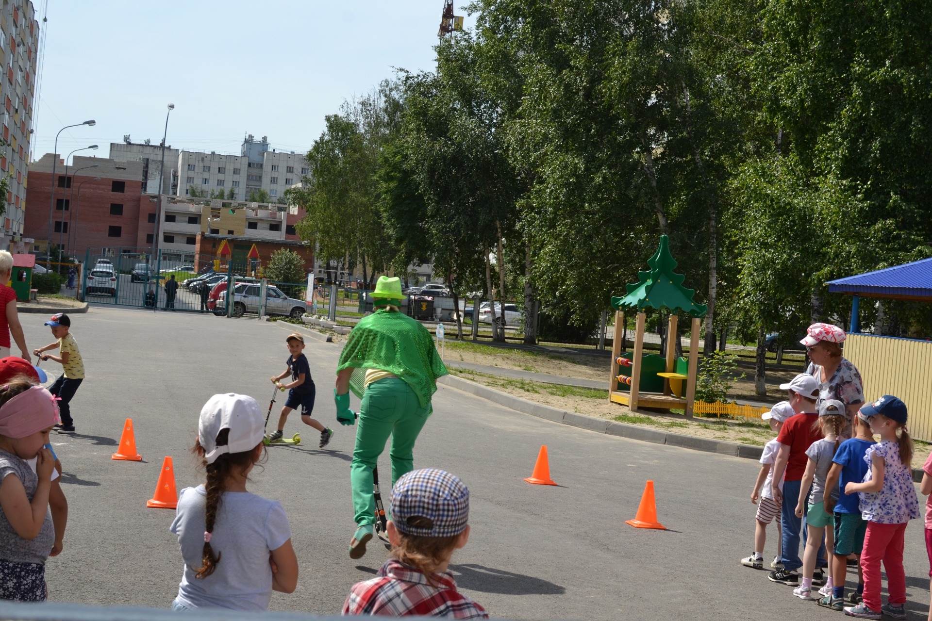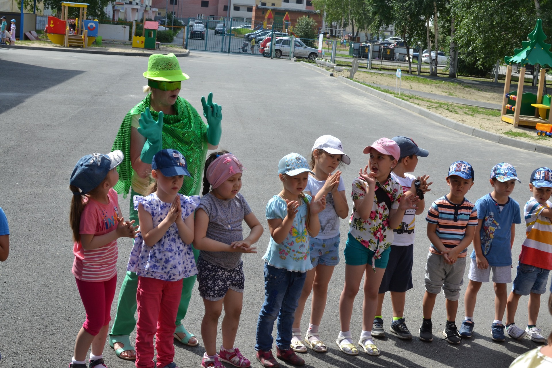 В ясный летний денёк на игровой площади на территории детского сада педагоги организовали с детьми весёлые игры- соревнования. Добрые, весёлые соревновательные игры на свежем воздухе создали хорошее настроение у всех участников, а необычный «зелёный» гость порадовал детей своими шутками.