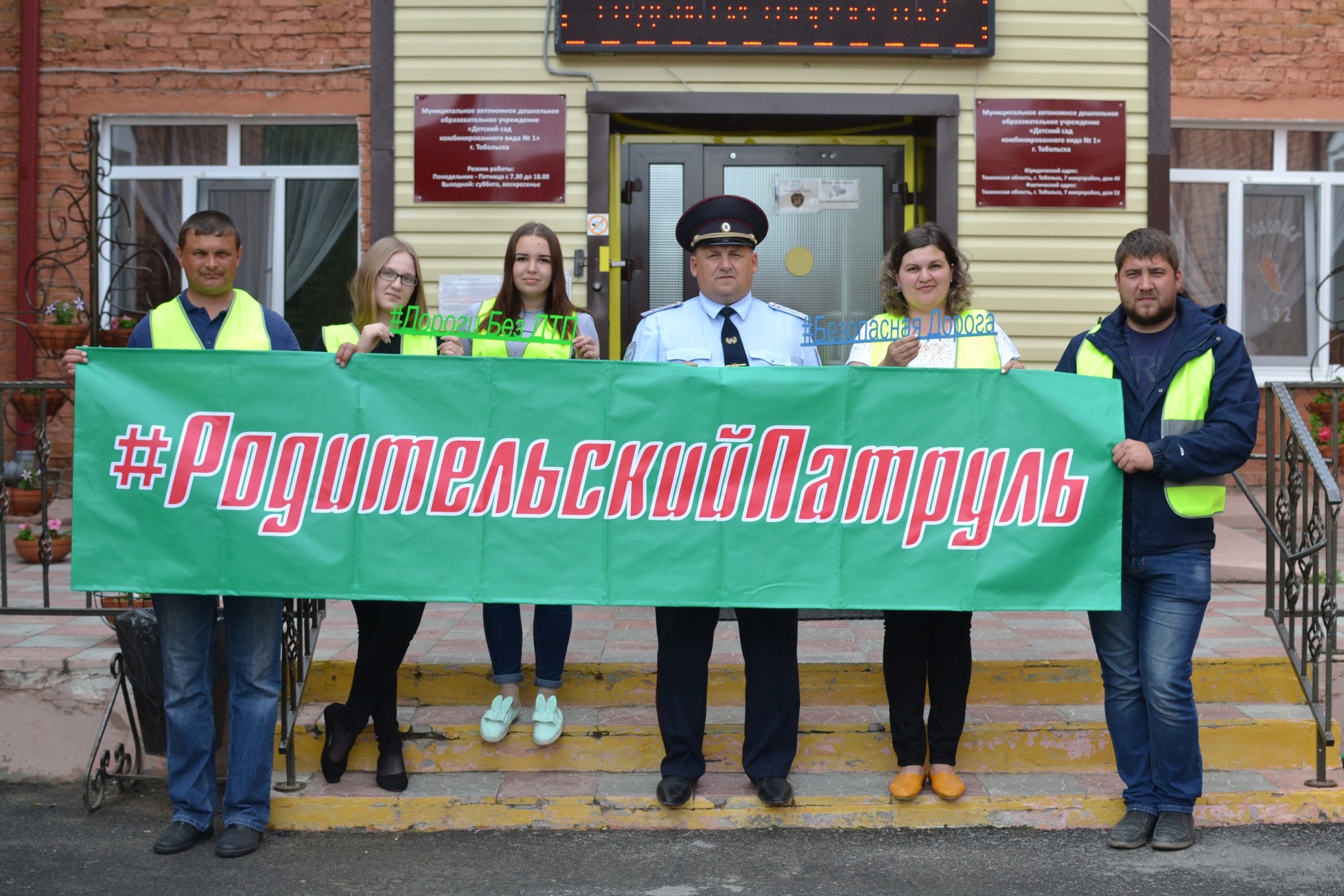В июле 2019 года в МАДОУ «Детский сад № 1» г. Тобольска совместно с ОГИБДД МО МВД «Тобольский» были организованы профилактические мероприятия с участием педагогов и родителей под символическим названием «Родительский патруль». Профилактические беседы с участниками дорожного движения - водителями и пешеходами проводились на прилегающей к детскому саду территории: автомобильной парковке, детских придомовых площадках, на площади у ТЦ «Жемчужина».